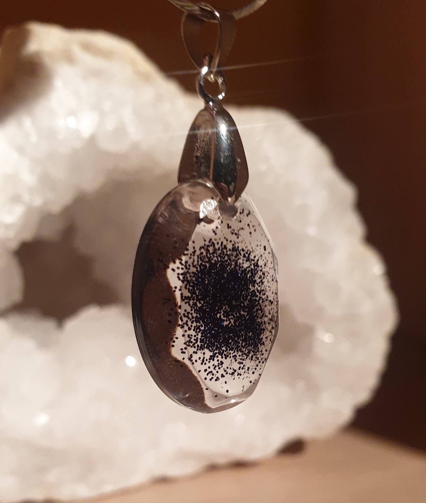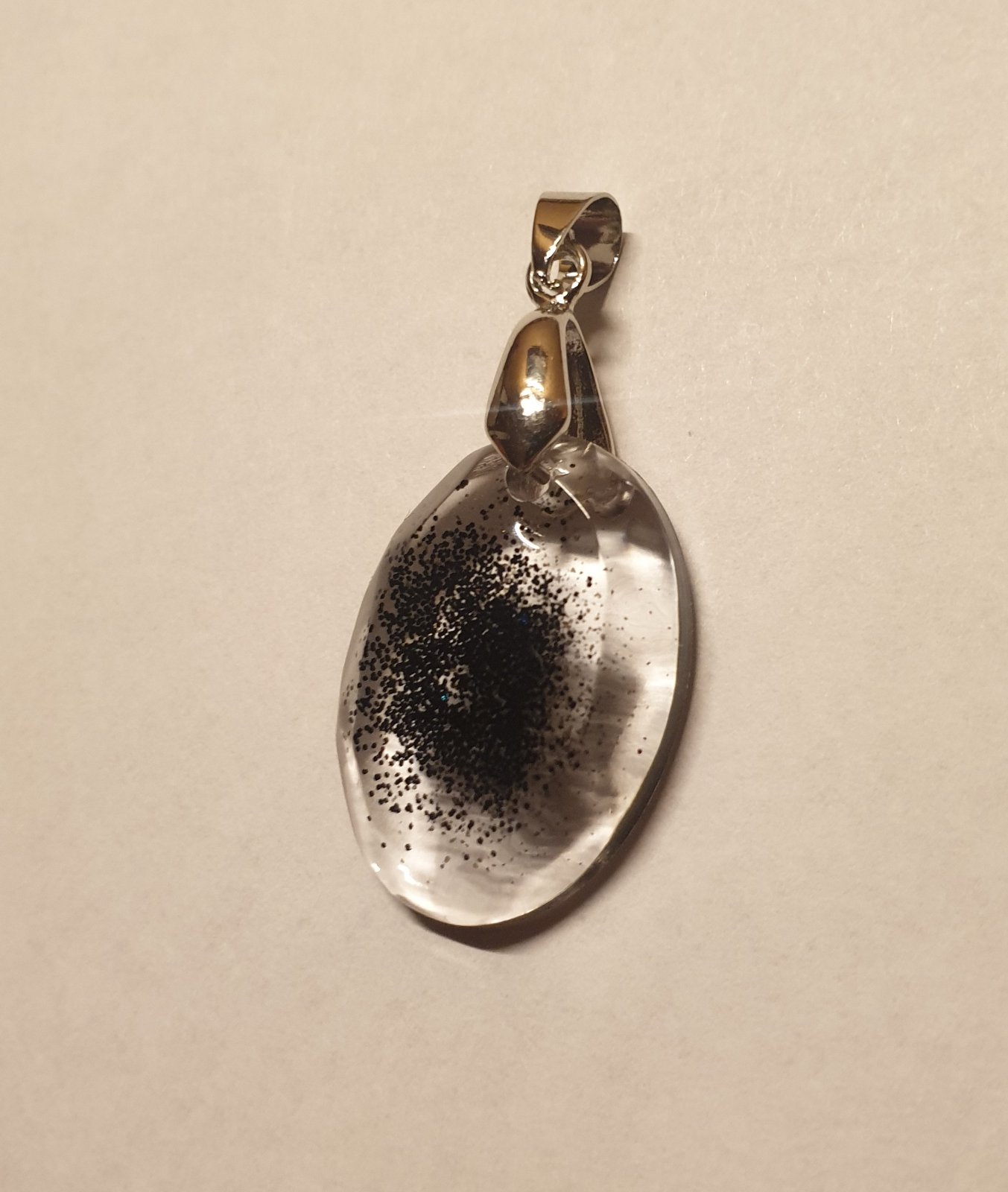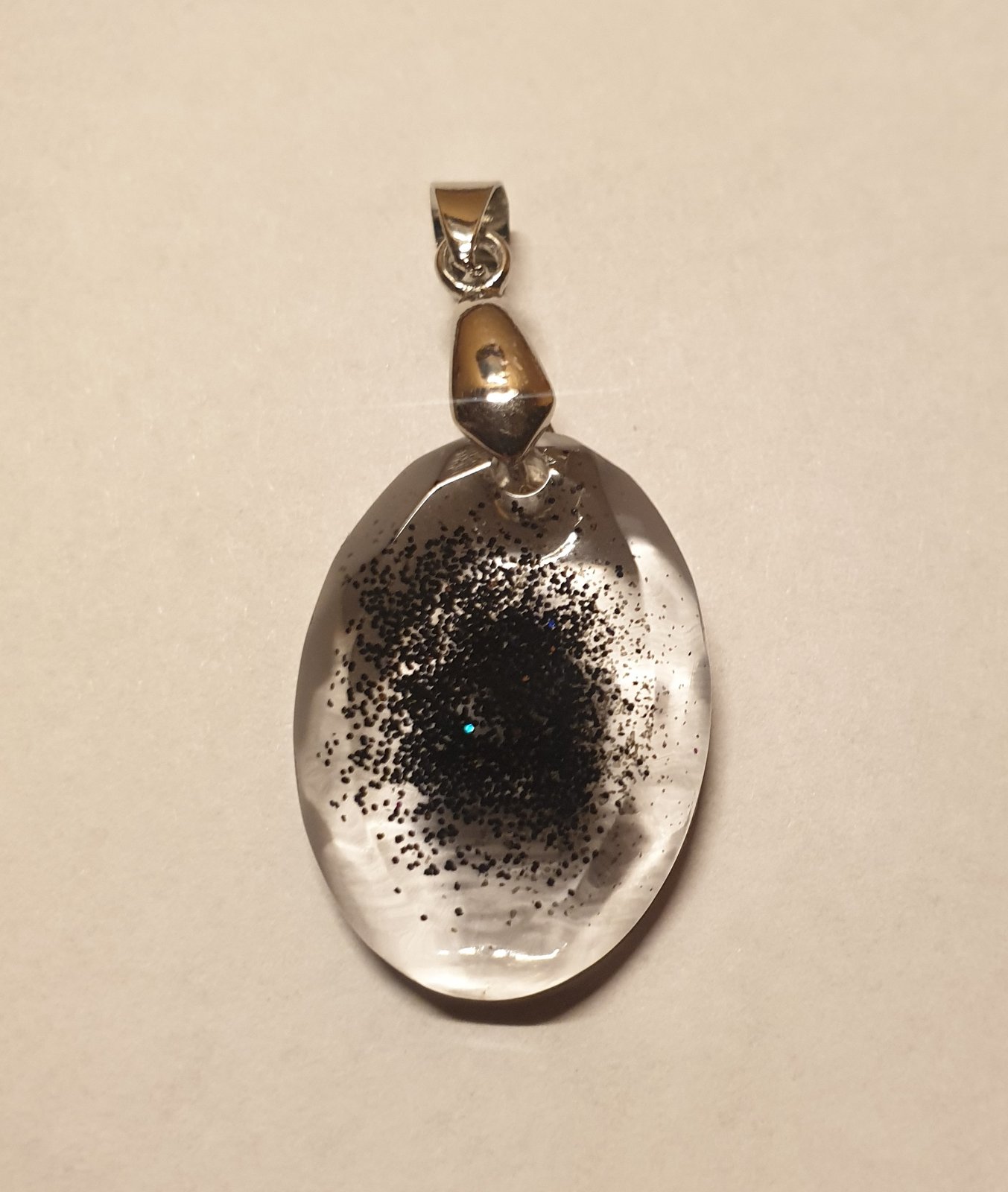 přívěsek s bižuterním úchytem. efektní design se třpytkami. velikost: šířka 2 cm, výška s úchytem 4 cm. ruční práce. každý kus je originál. kupujete vyobrazený kus.