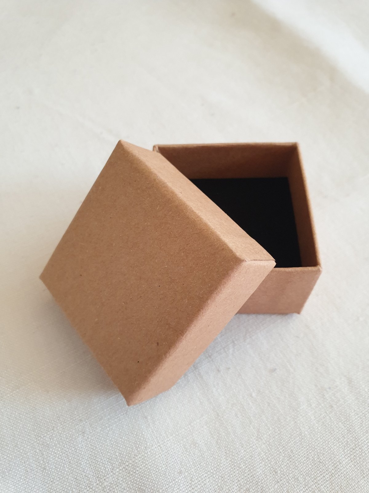 Papírová dárková krabička s černou poduškou uvnitř. Rozměry: 50x50x30 mm. Vhodná pro prsten.