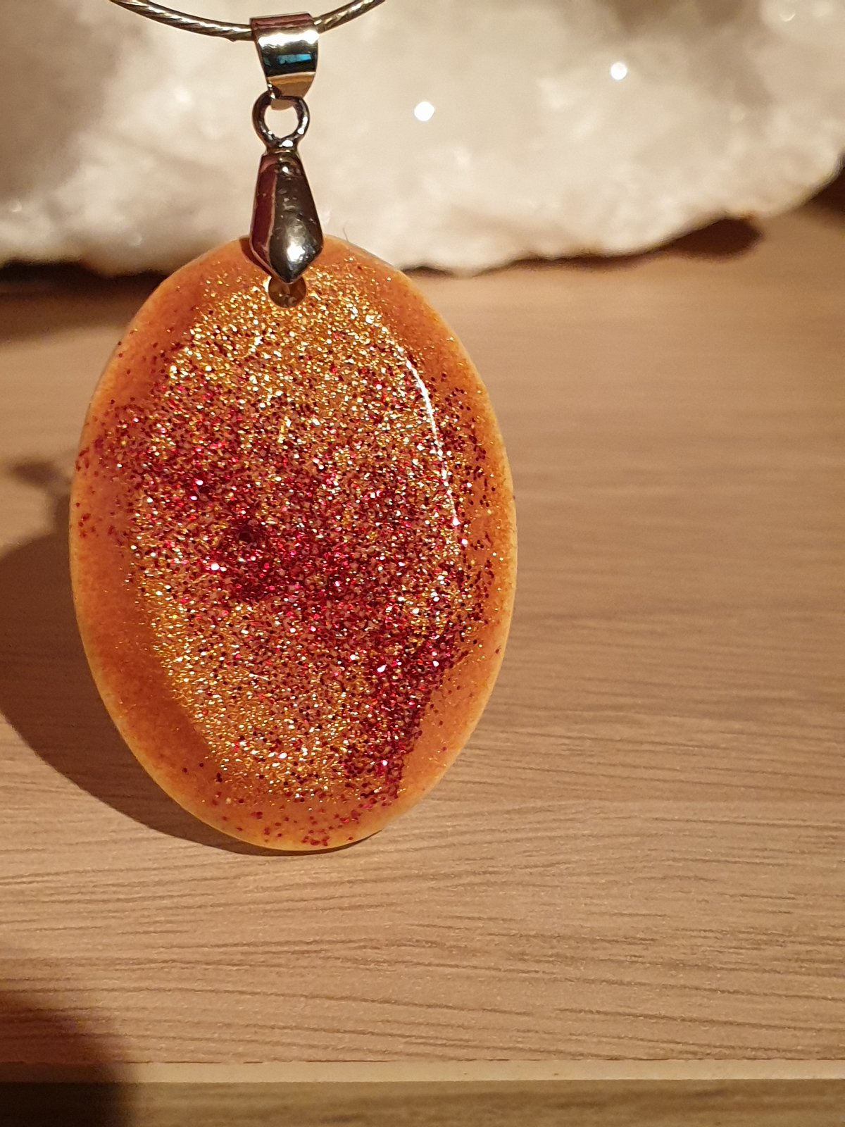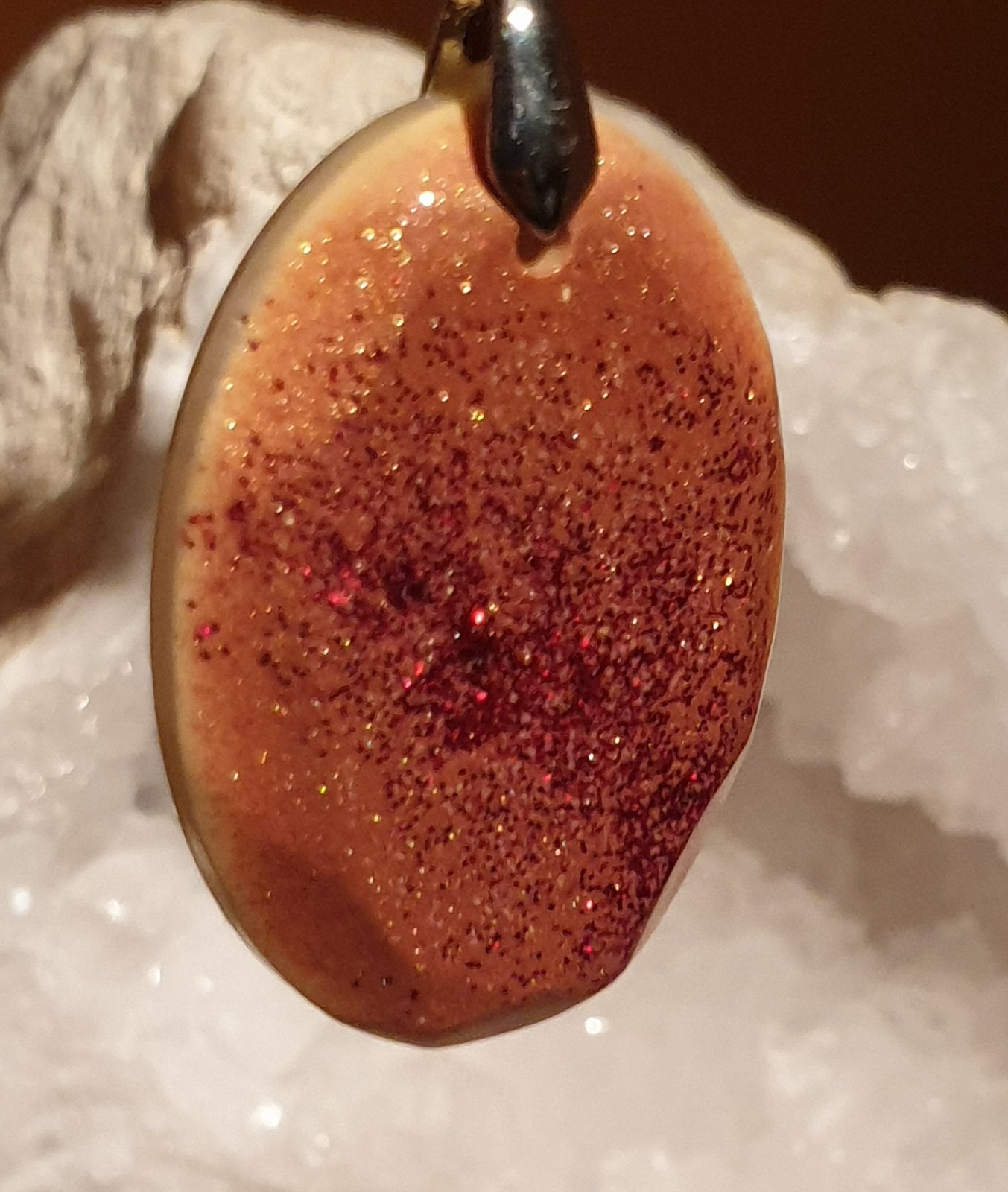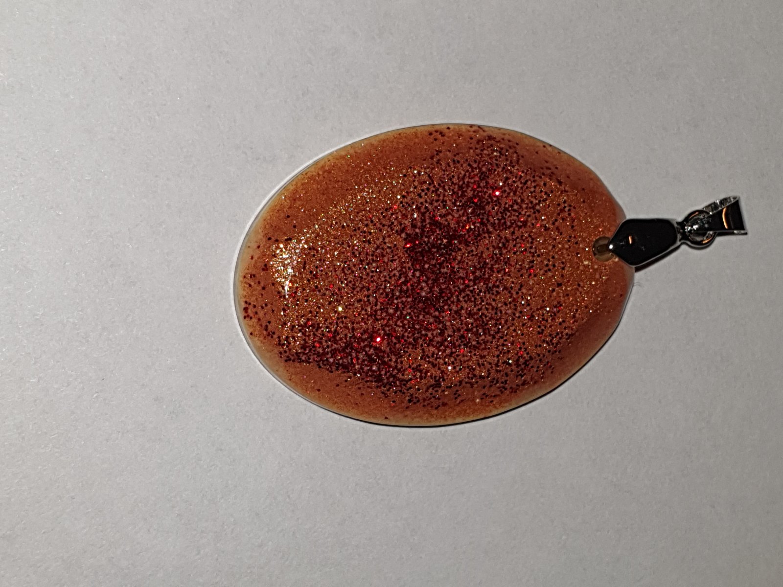 přívěsek s bižuterním úchytem. efektní design se třpytkami. velikost: šířka 3 cm, výška s úchytem 5 cm. ruční práce. každý kus je originál. kupujete vyobrazený kus.