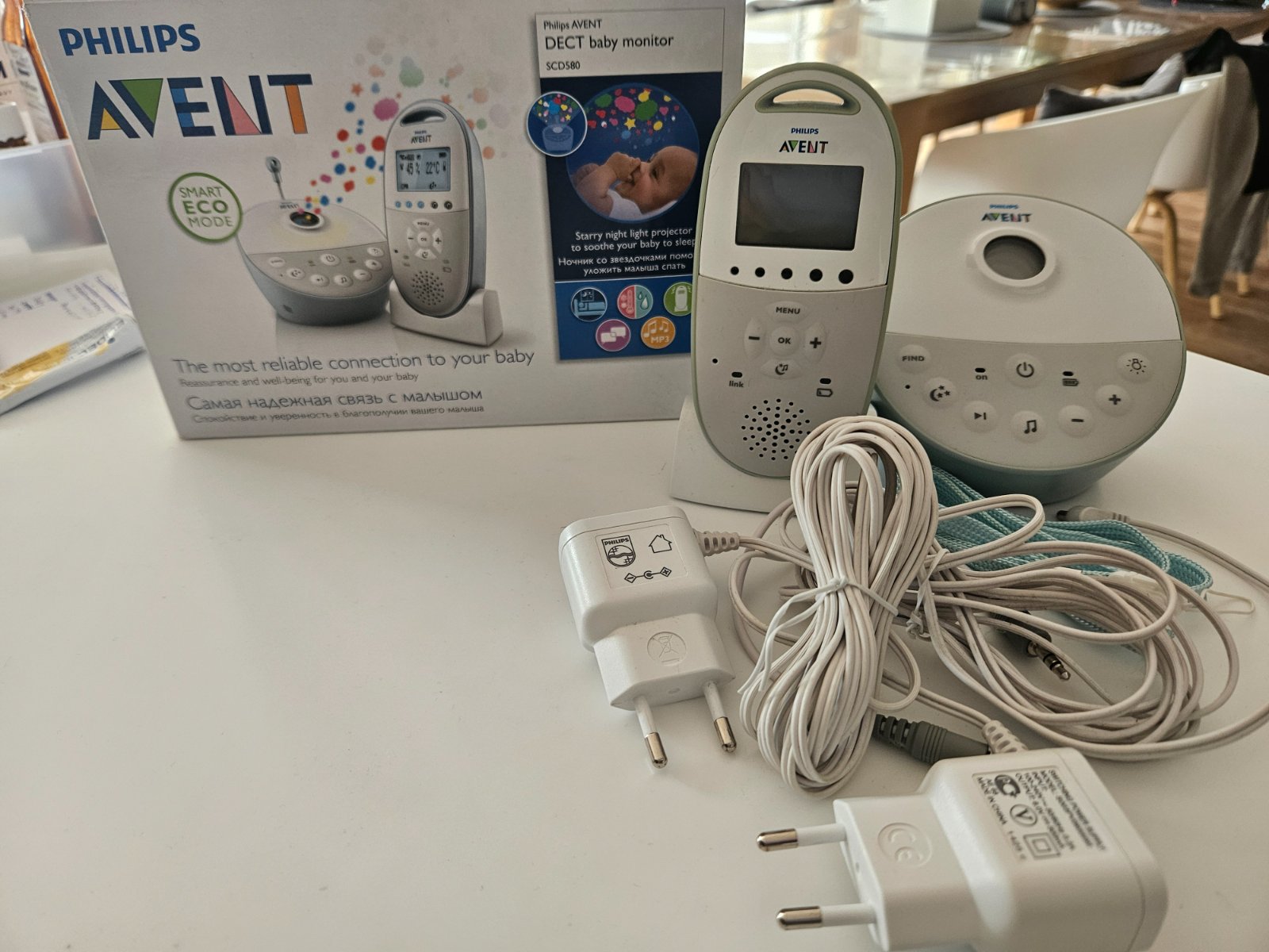 V originální krabici a s návodem chůvička značky Philips AVENT. Rodičovská jednotka je napájena ze sítě, nebo bateriemi. LED kontrolky ukazují, zda je jednotka připojena a zda je v dosahu. Zvuky mi...