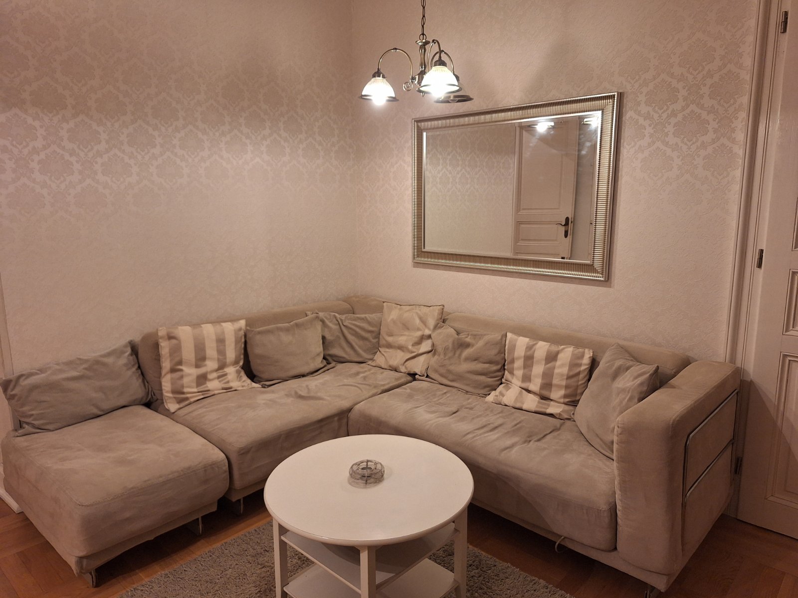 Obyvak ikea pohovka, lezadlo, konferencni stolek,