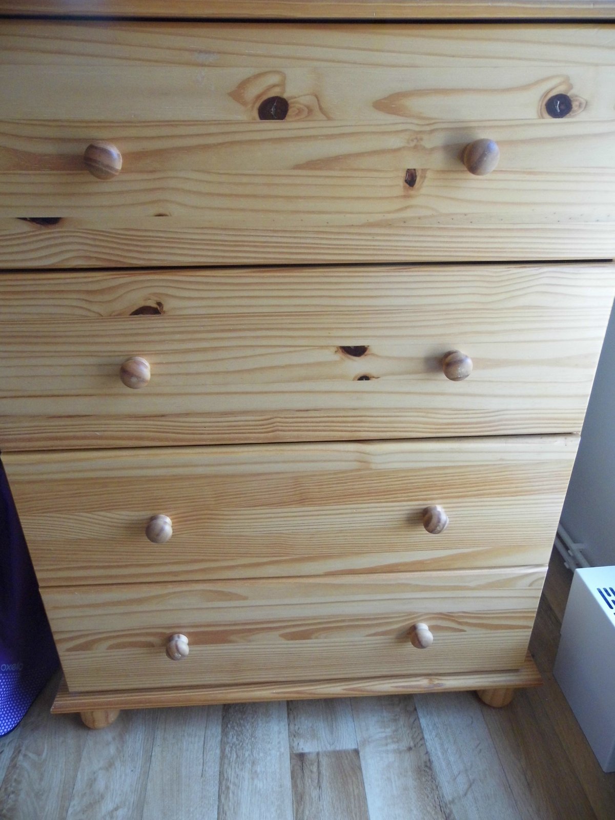 Nabízím použitou dřevěnou komodu se 4 zásuvkami, materiál masiv borovice. Rozměry 80 × 43 × 102 (š × h × v). Barva je lehce místy šislá.