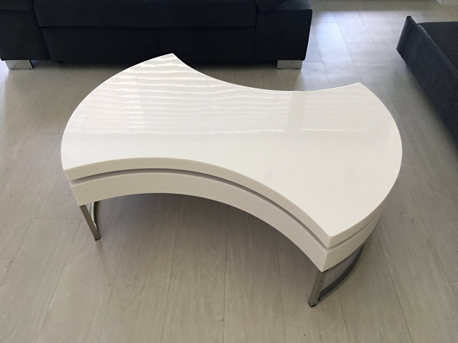 Otočný stůl, chromové nohy; viditelné známky používání, bílá už není zářivá jako dřív - vše detailně nafoceno; Pc téměř 9000 Kč.