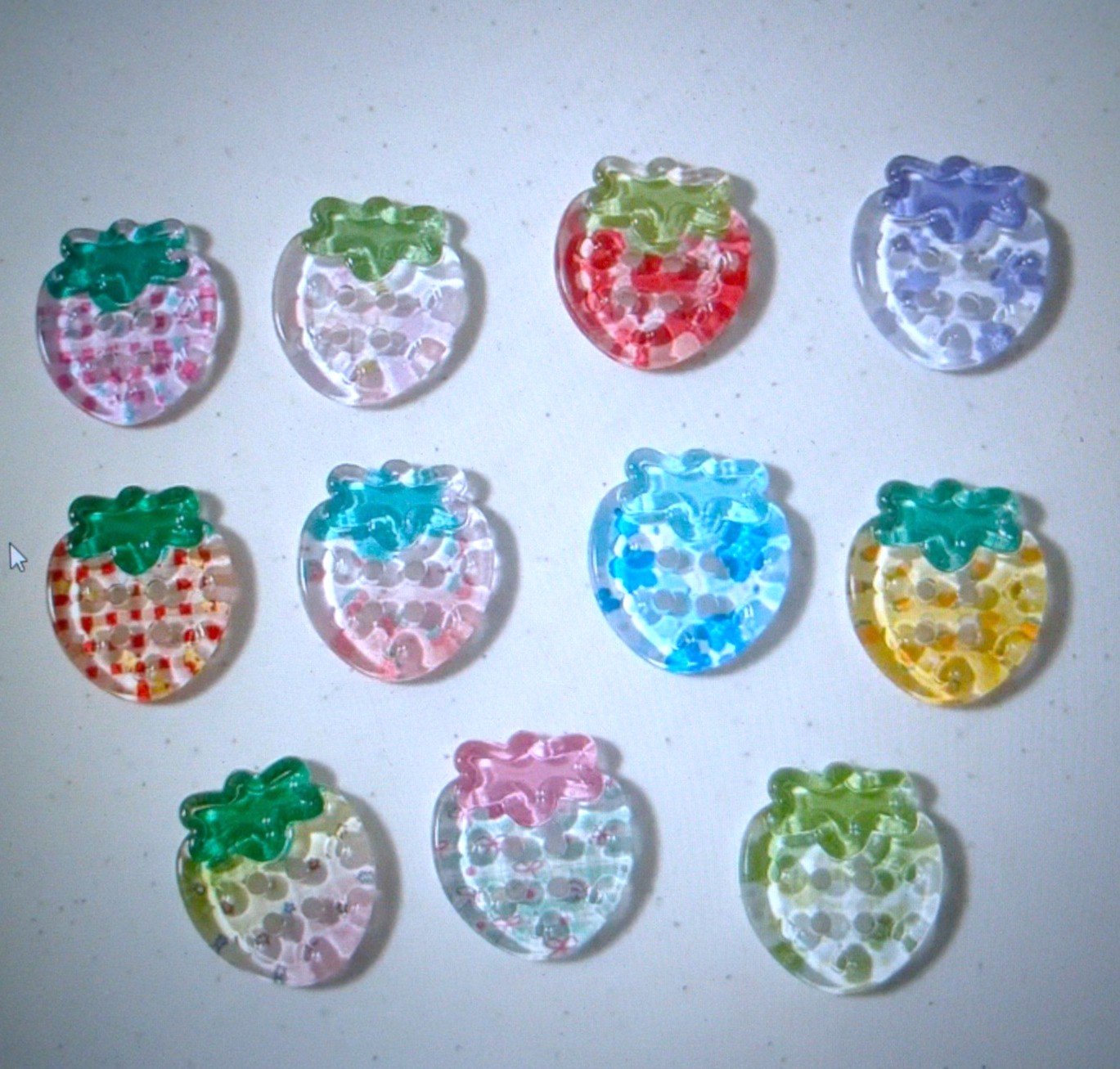 Knoflíky ve tvaru jahody jsou vhodné k našití na svetříky, šaty, bundy, batůžky i tašky.