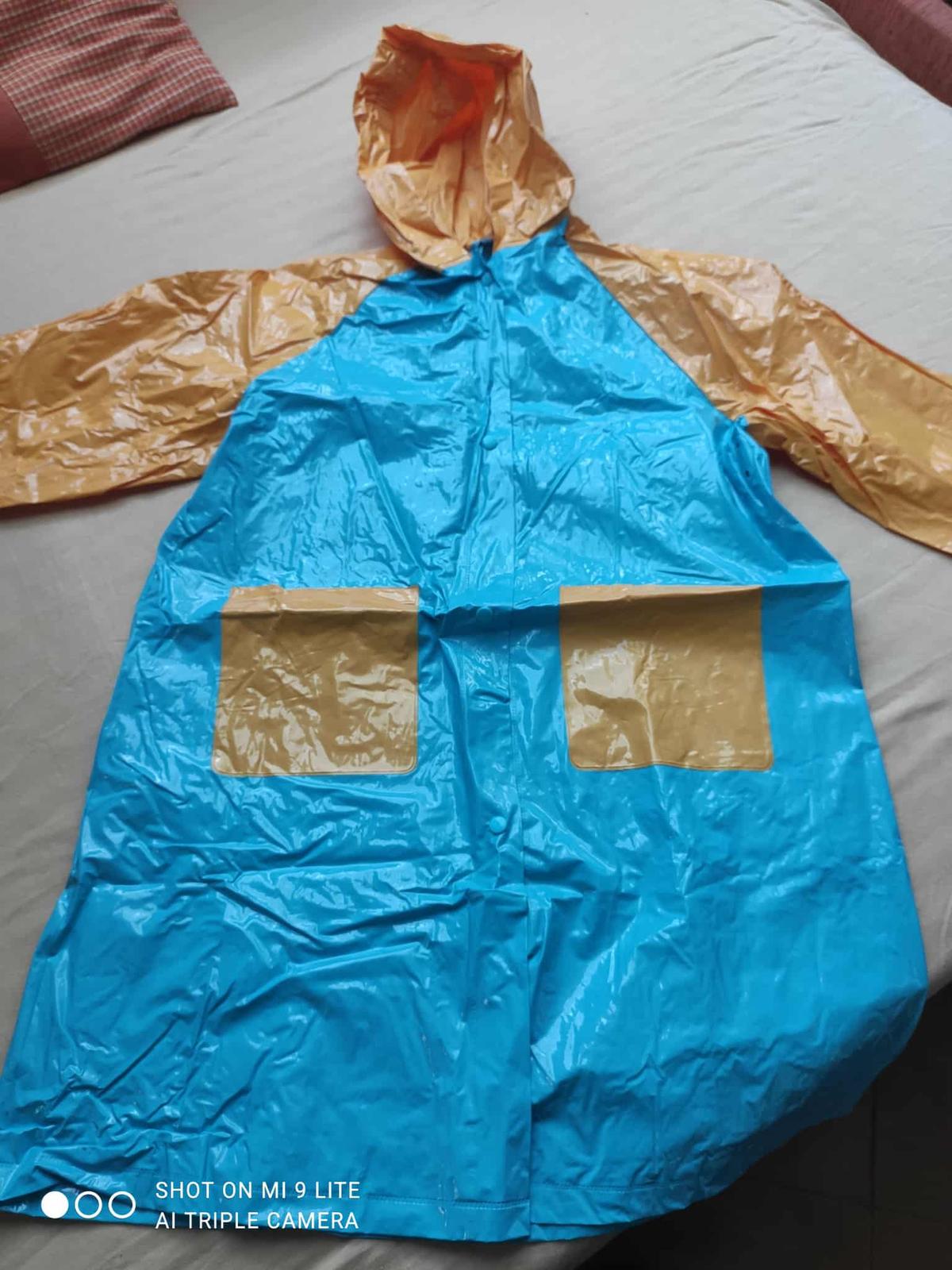 Nová plášťenka pončo. Na vytvoření rukávu je na každé straně patent. Uvedená velikost 3-5 let. Odhaduji spíš na 3 roky. Rozpětí přes ramena je 80 cm. Cena + doprava