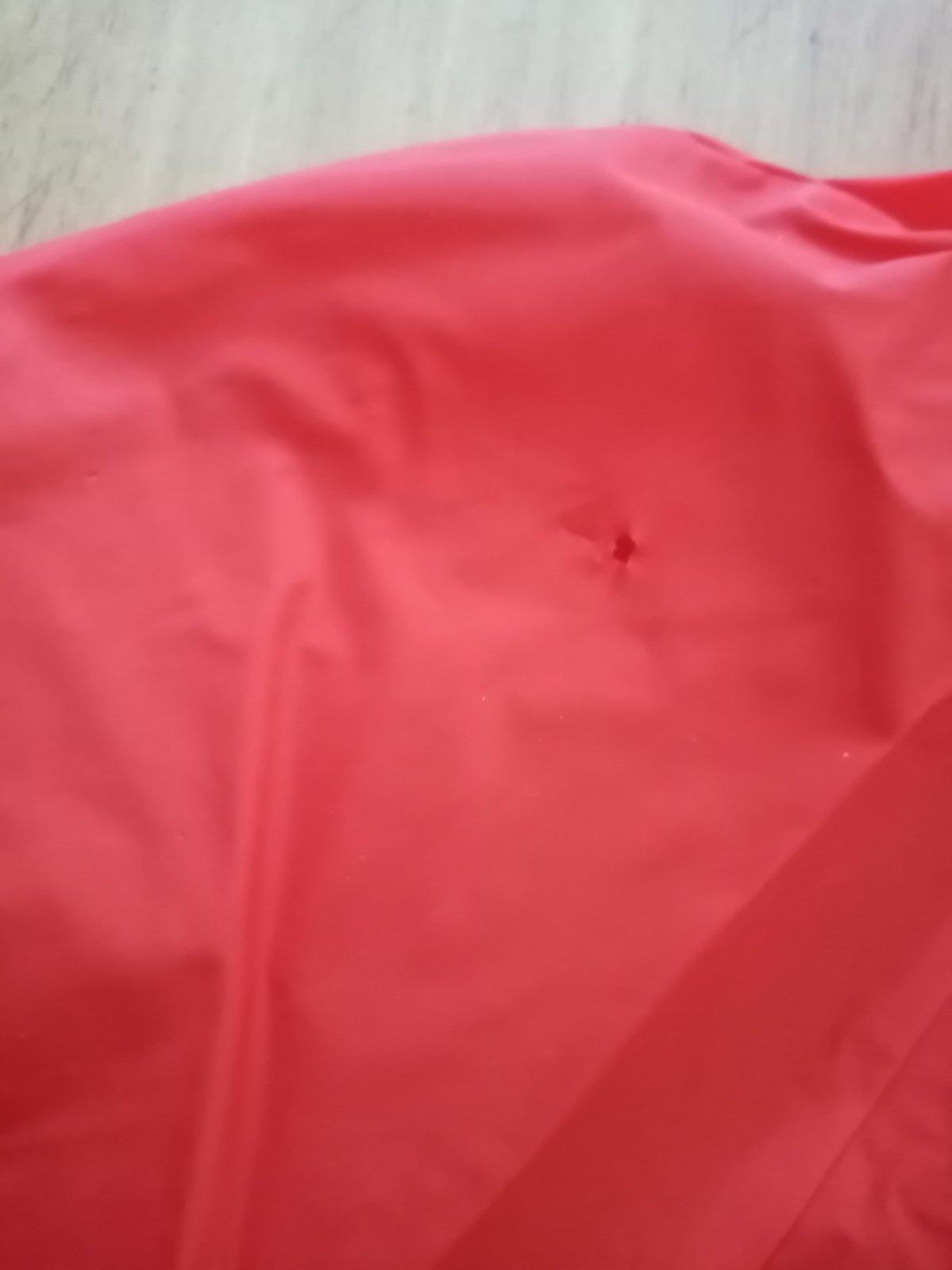 Pláštěnka v dobrém stavu. Akorát dirka u jednoho ramene a vzadu světlé fličky. Viz foto vše. Velikost 10-12 let.