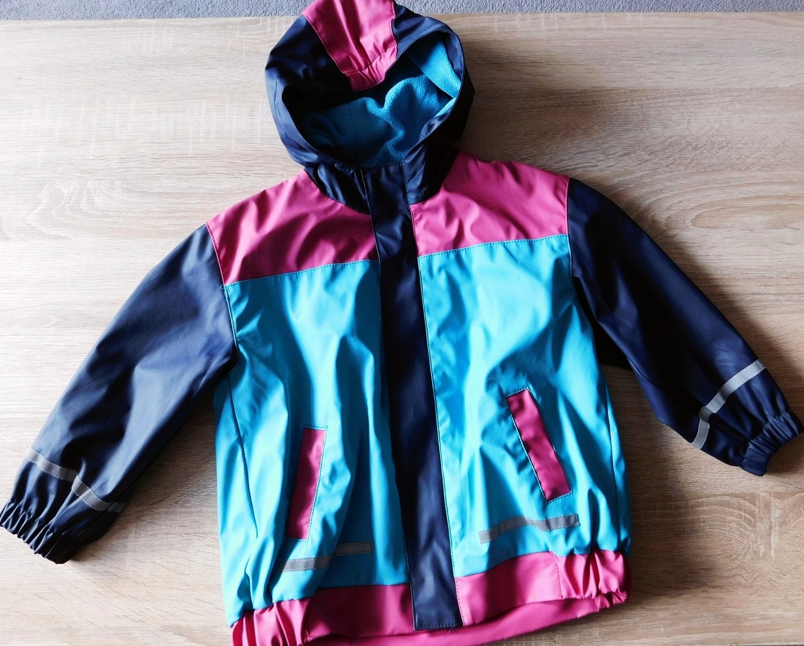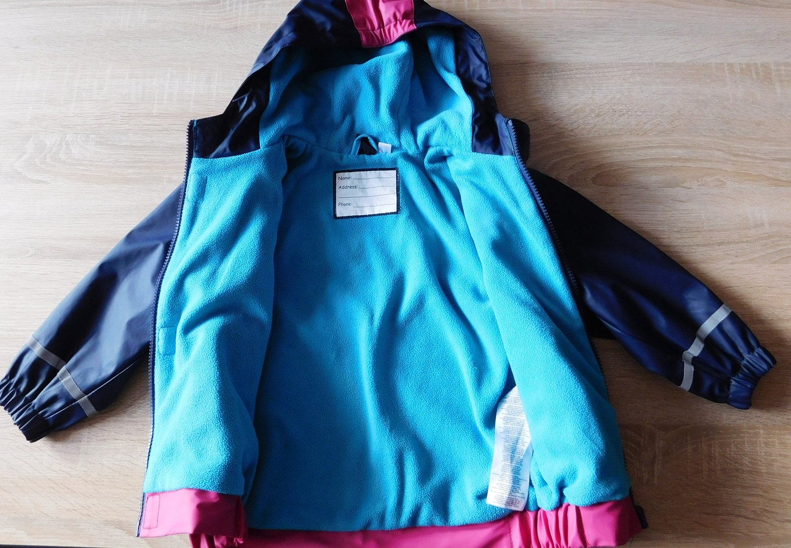 pogumovaná,zateplená flísem,kapucka,zapínání na zip,reflexní prvky,d.43cm,š.40cm,ruk.od krku 42cm,vhodná i k běžnému nošení,do města,na turistiku
