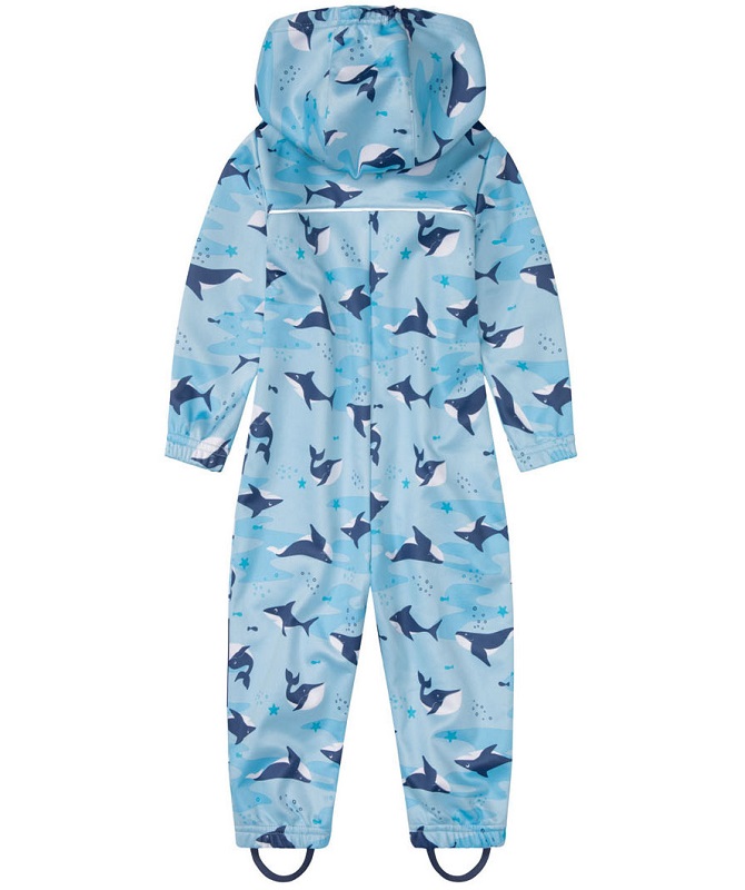 Podzimní / jarní klučičí softshellový overal s motivem mořský svět (velryby, žraloci, rybičky, hvězdice).