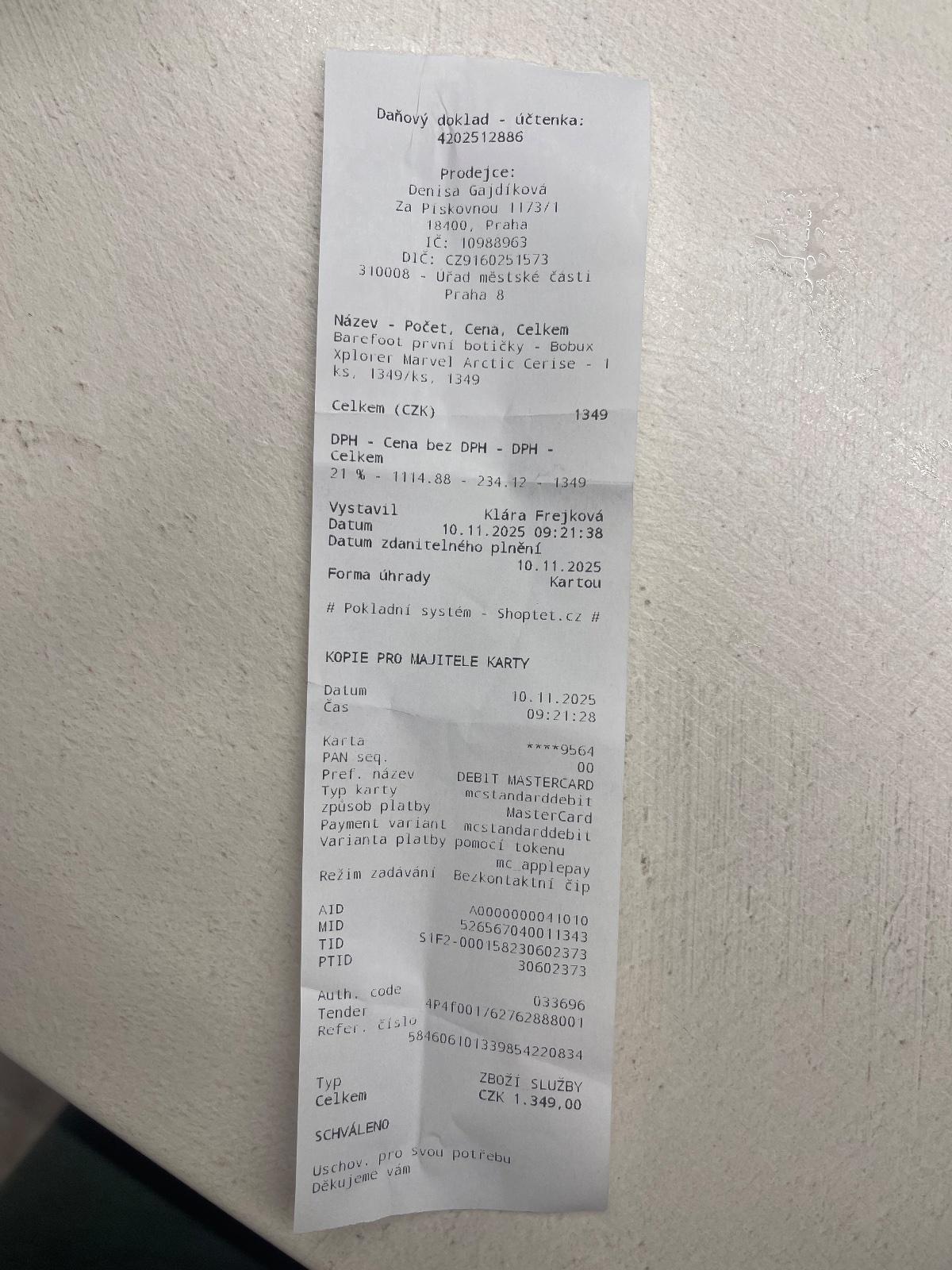 Velikost 19, přikládám i účtenku