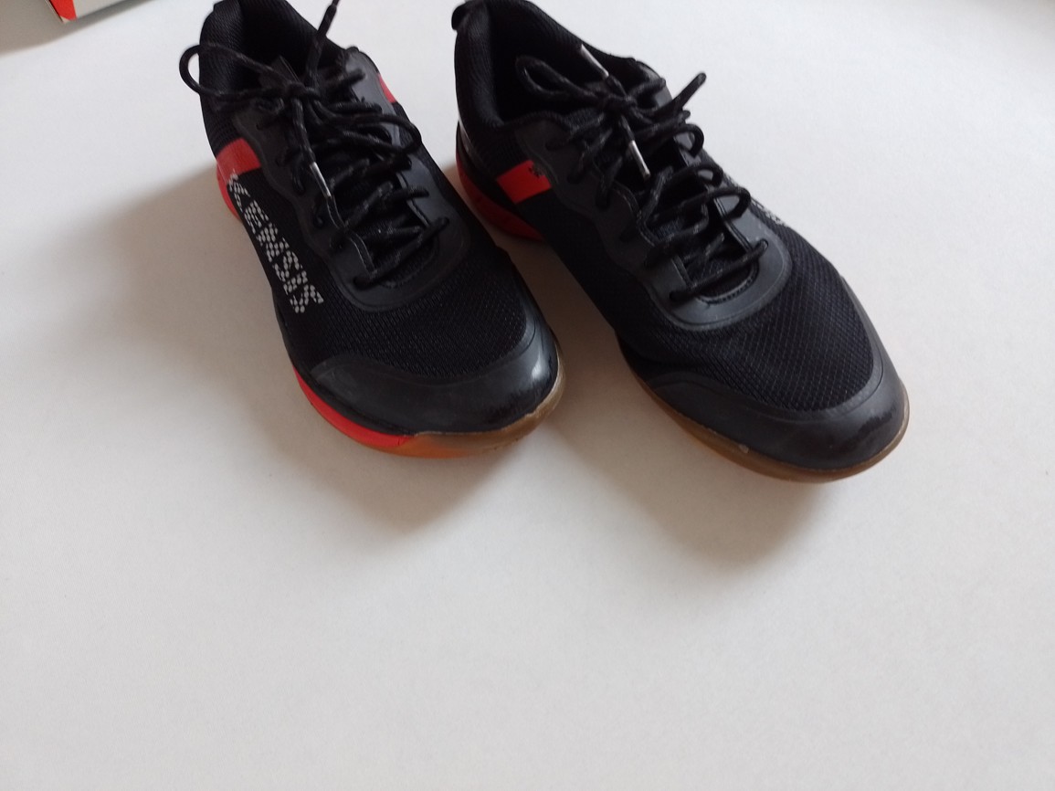 Prodám nošené sálovky zn. Kensis, vel. EU43, UK9, 28,7 cm, z vnitřní strany na jedné botě ošoupaná barva (viz foto), a špičky "sjeté" (viz. foto), jen povrchová vada.