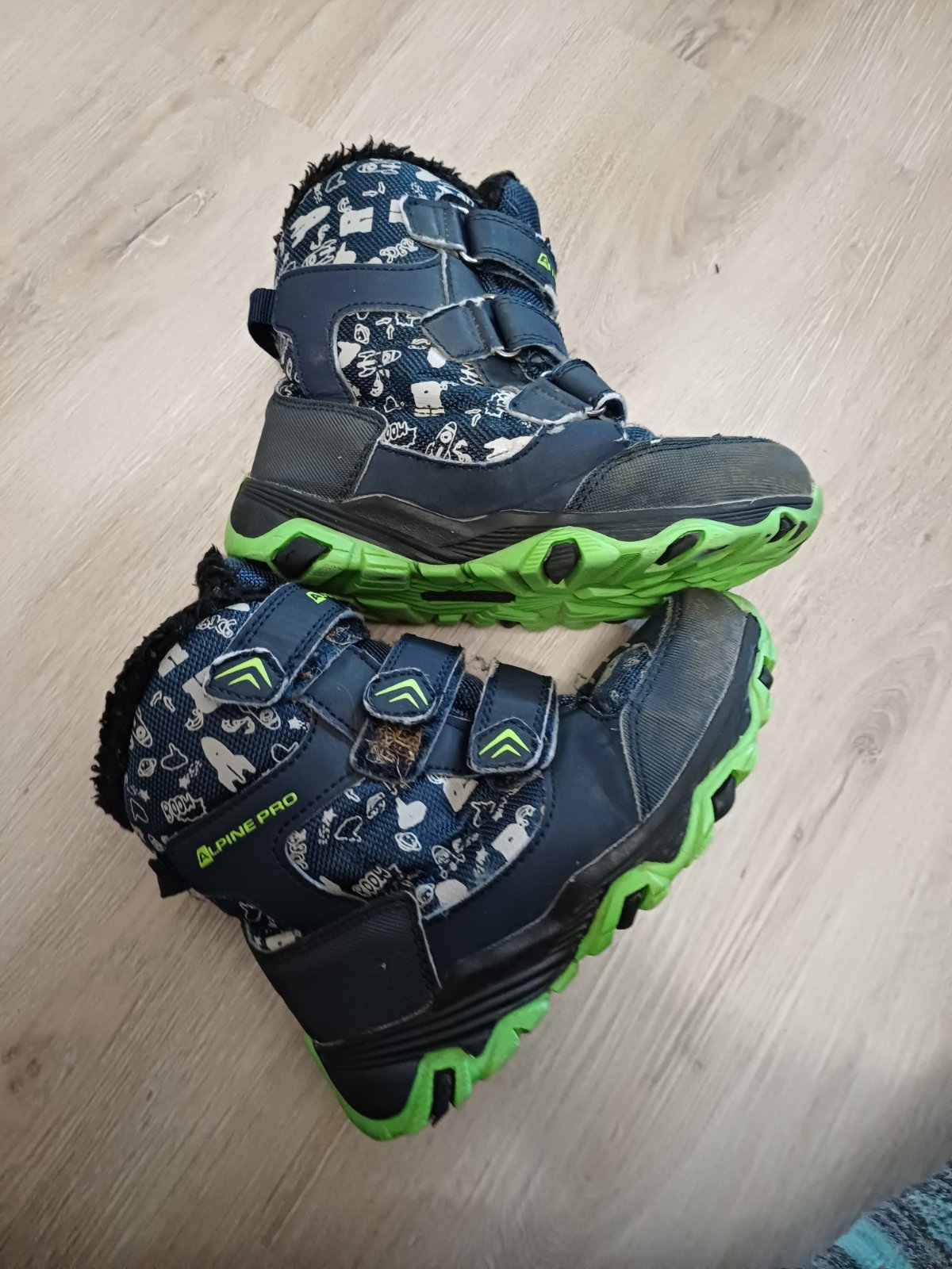 Zimní boty, velikost 29, stélka 18cm, značka Alpine Pro, nošené, zapínání na suchý zip, malinko okopané špičky.