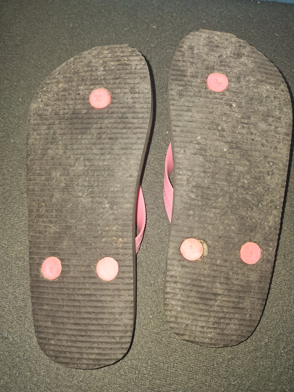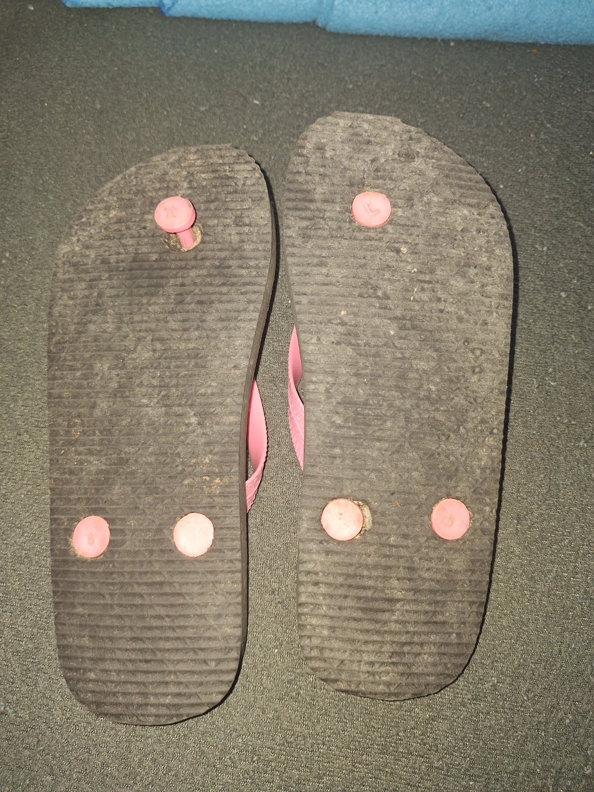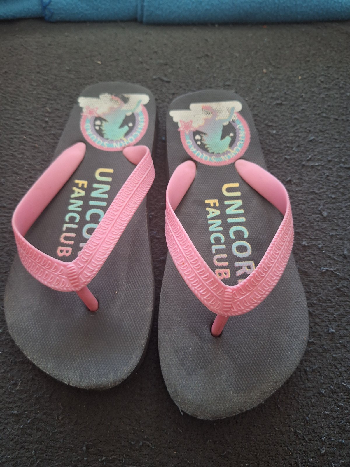 Dívčí žabky, vel. ani značka neuvedeno, odhaduji 33. Známky používání, vyfoceno