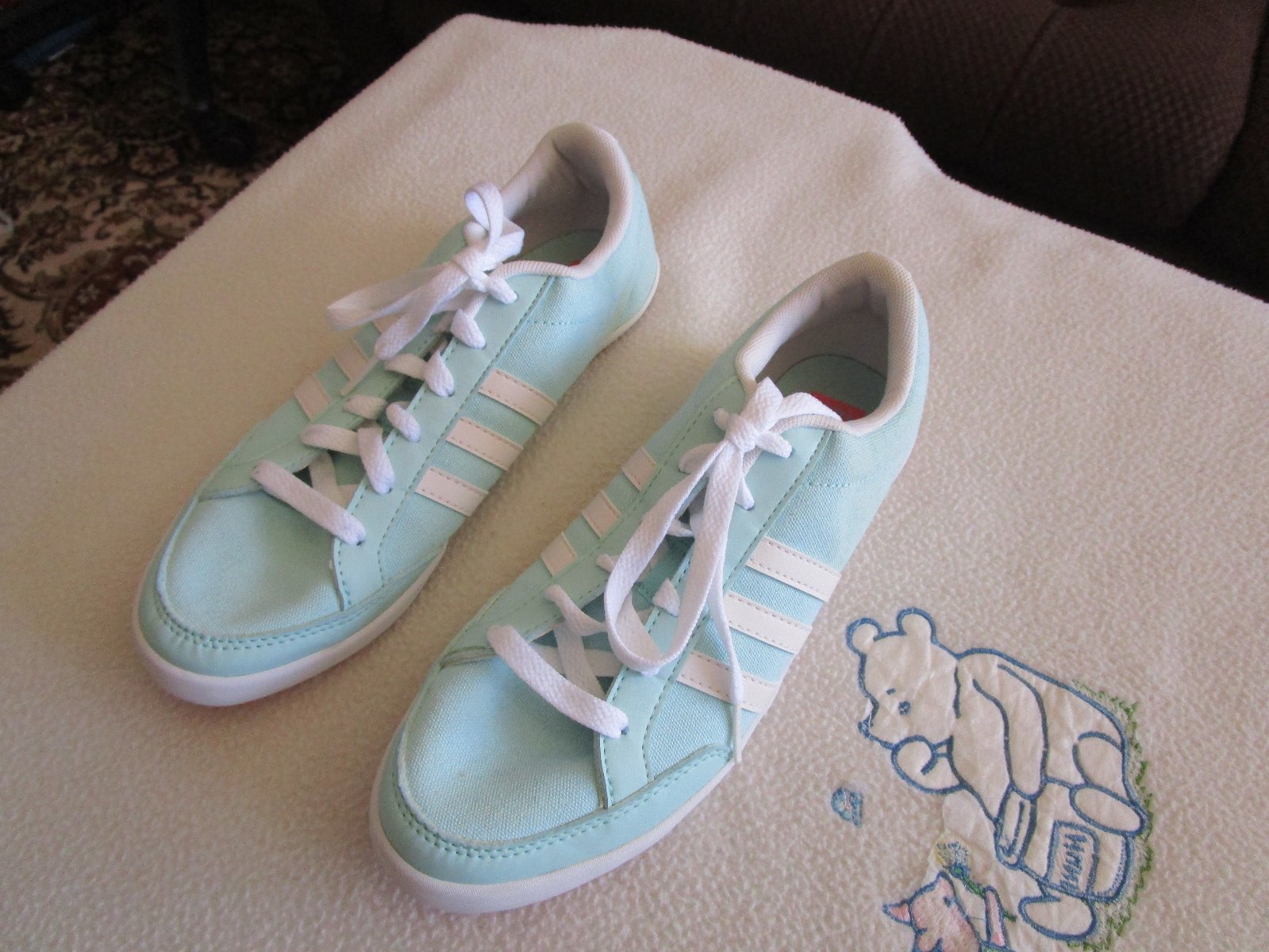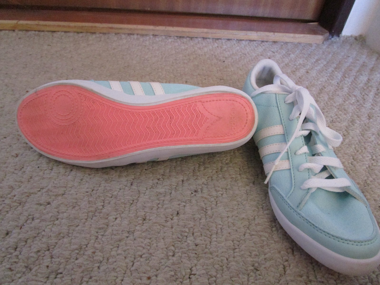 Pěkné sv. zelené látkové tenisky s bílými proužky a lemováním zn. Adidas Neo. Č. 37, UK 6, vnitřní stélka 24 cm, jako nové - jen na 1 místě flíčky - viz foto, cena jen 149 Kč.