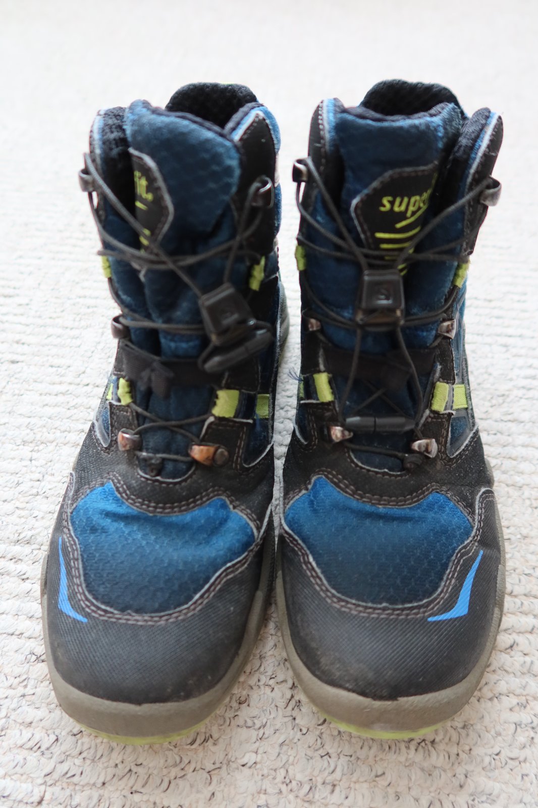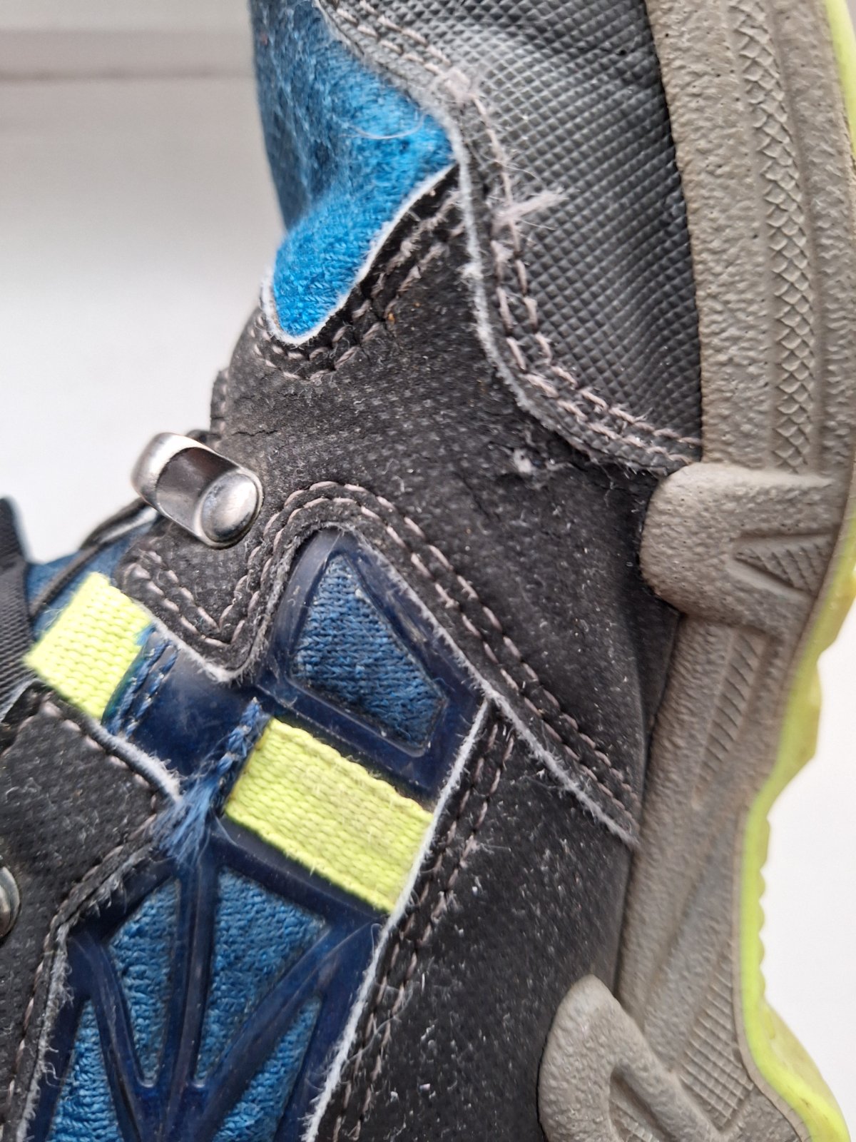 Nošené v pěkném stavu, běžné známky opotřebení . Na levé botě malá prasklinka viz. foto, zohledněno v ceně.