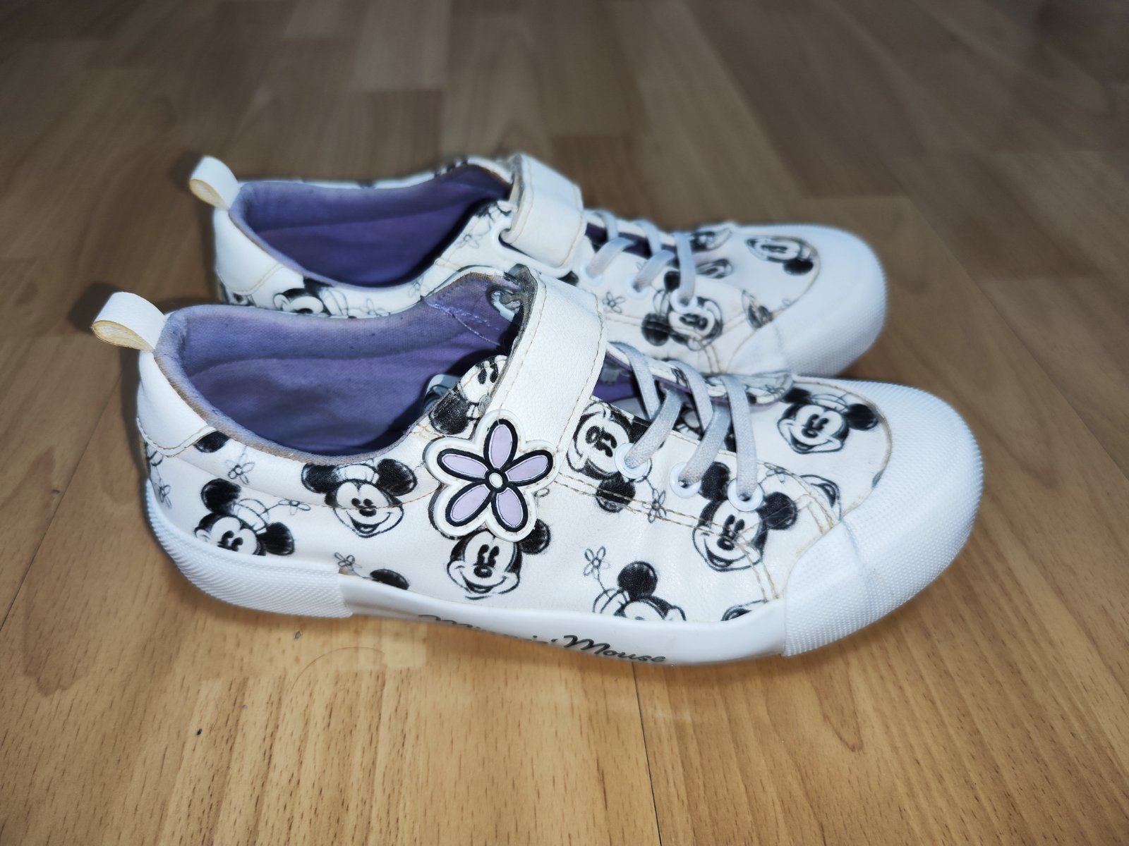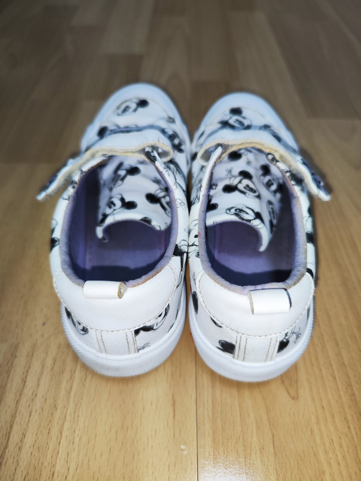 Prodám tenisky Reserved Disney, velikost 39. Tenisky mají poutka pro natažení na patách, zapínání na suchý zip, pružné šněrování vpředu, potisk s motivem Mickey Mouse. Cena 110 Kč, v Brně možné osobní předání.