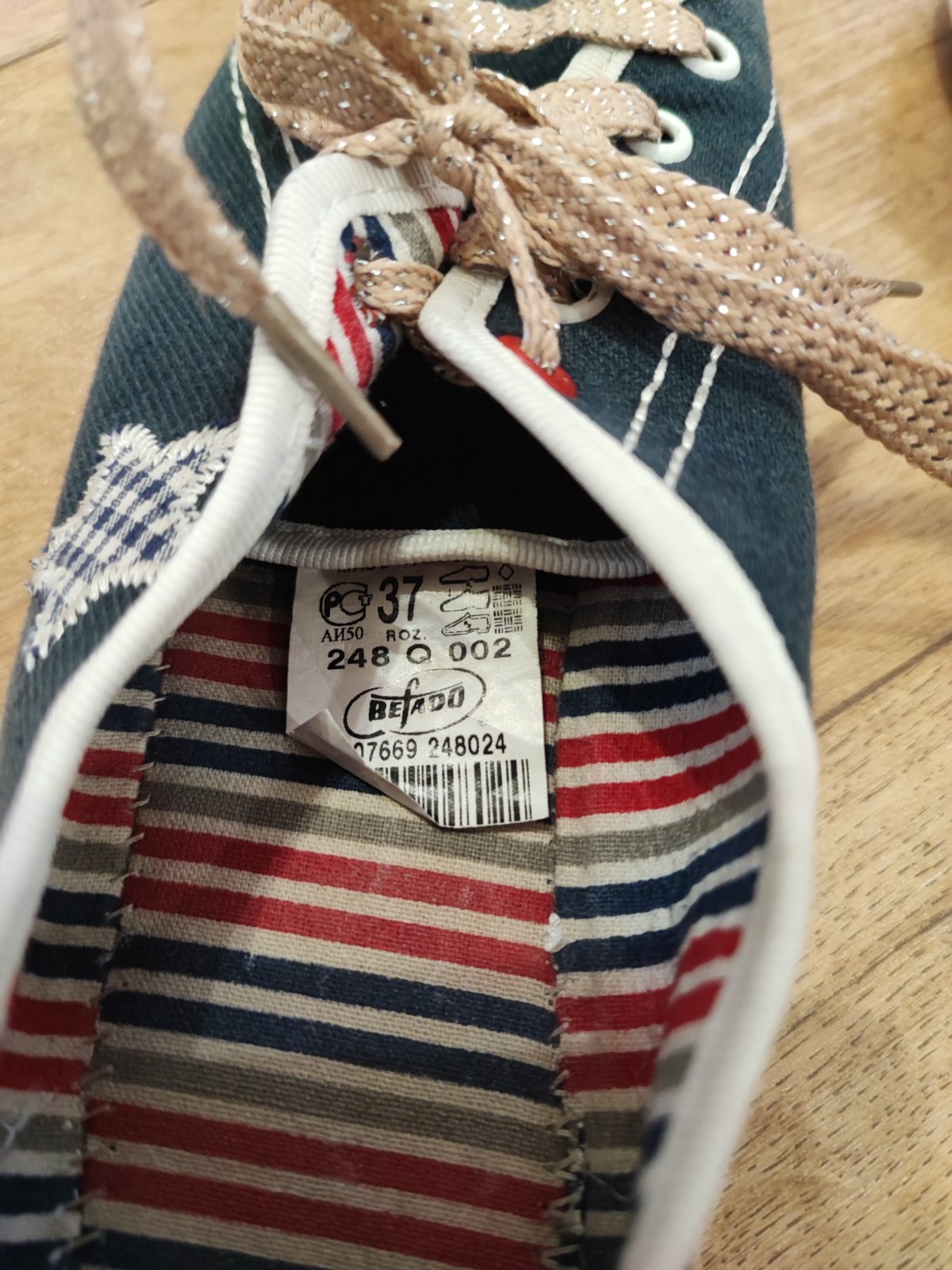 Plátěné tenisky zn. Befado. Velikost 37, délku stélky jsem se pokusila vyfotit.