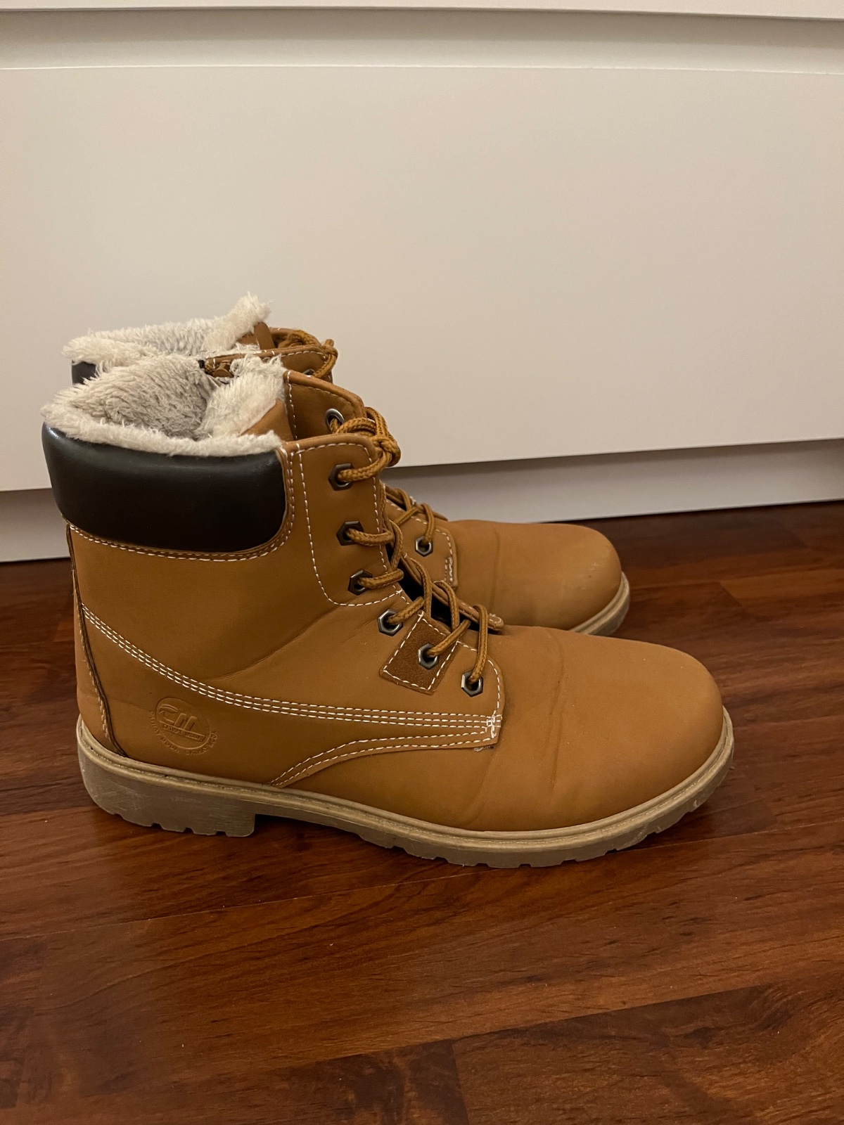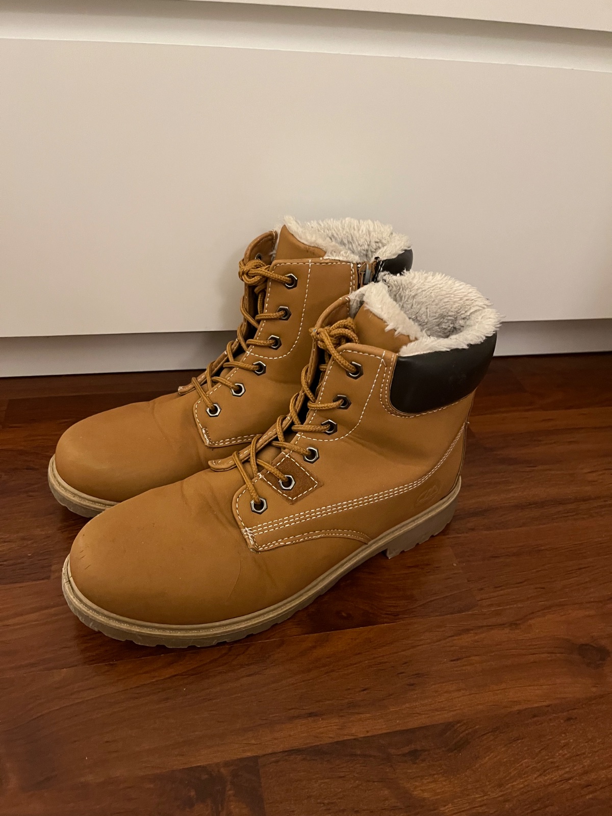 Zimní kotníkové boty vel. 40. Hořčicová barva, tkaničky a zip z vnitřní strany boty.