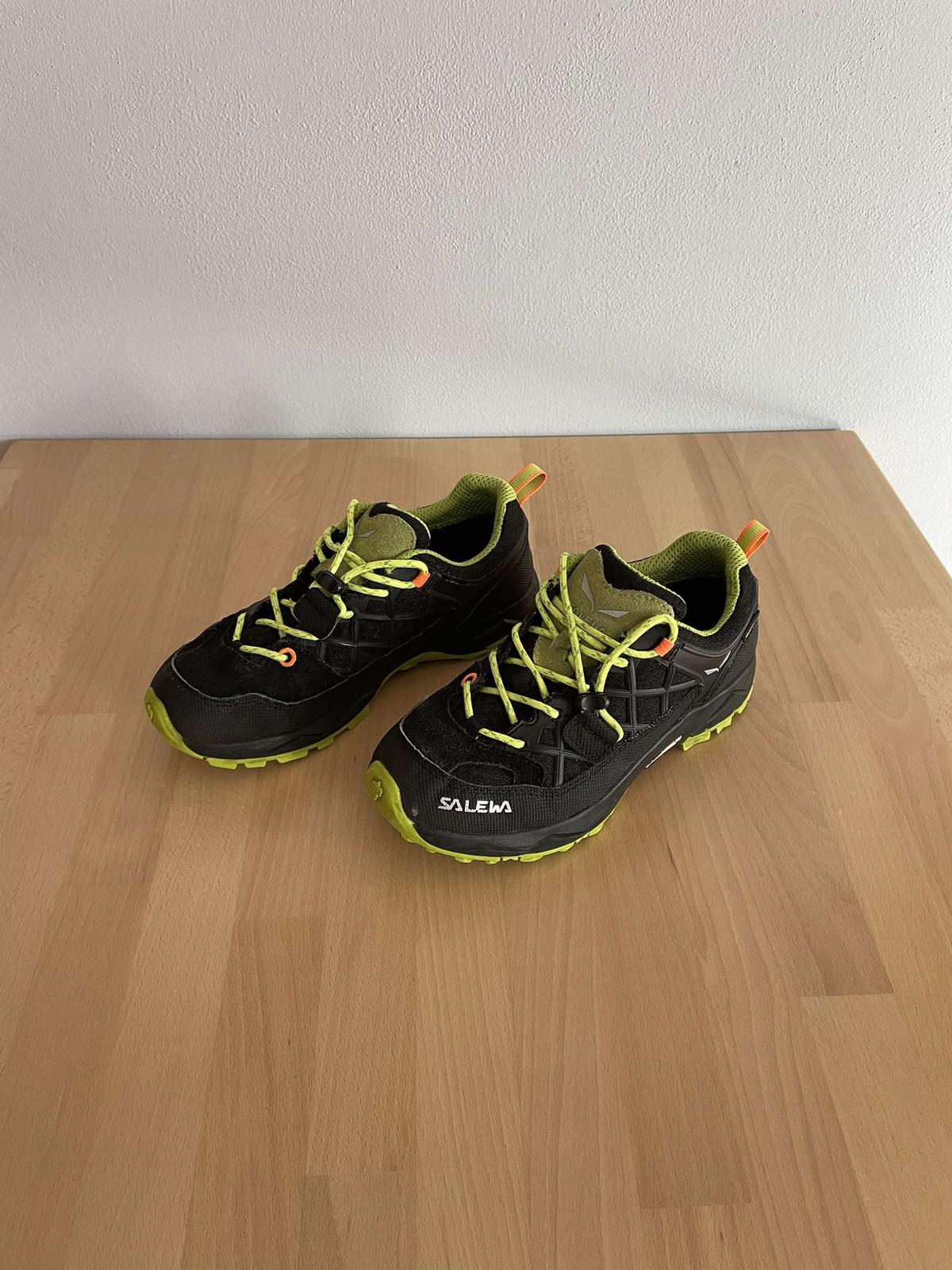 Salewa Jr. Wildfire- vodotěsná nízká dětská obuv s robustní podešví MICHELIN. Lehký, pružný a robustní svršek má voděodolnou prodyšnou podšívku, která udrží nohy dětí v suchu a zároveň jim umožní dýchat. Struktura stélky OrthoLite vytváří systém řízení klimatu a odvádí vlhkost pryč od nohou. Svršek: Přírodní kůže (useň) - Semiš, Látka. Stélka bot 22,5cm. Opakovaně kupujeme synovi, spokojenost. PC 2.000, nyní 590Kč.