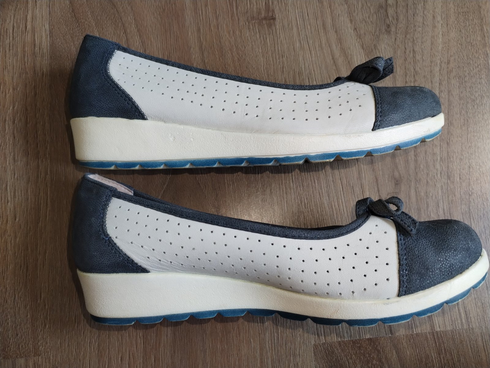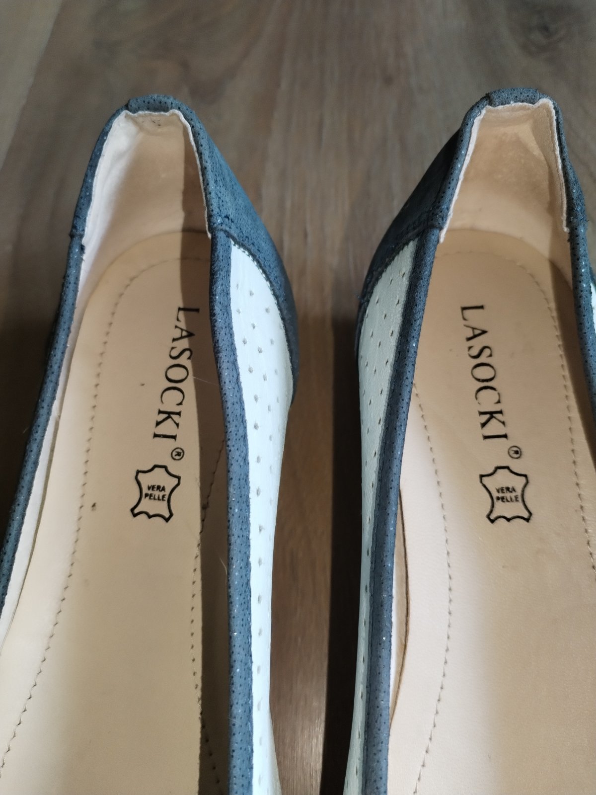 Lasocki kožené baleríny, plné, pevné, na vyvýšené platformě 3 cm, velikost 39, délka vnitřní stélky 24,5 cm, v perfektním nošeném stavu, neponičené, z čisté nekuřácké domácnosti, pohodlné, měkčená vložka, původní cena vyšší, nyní cena 350 Kč