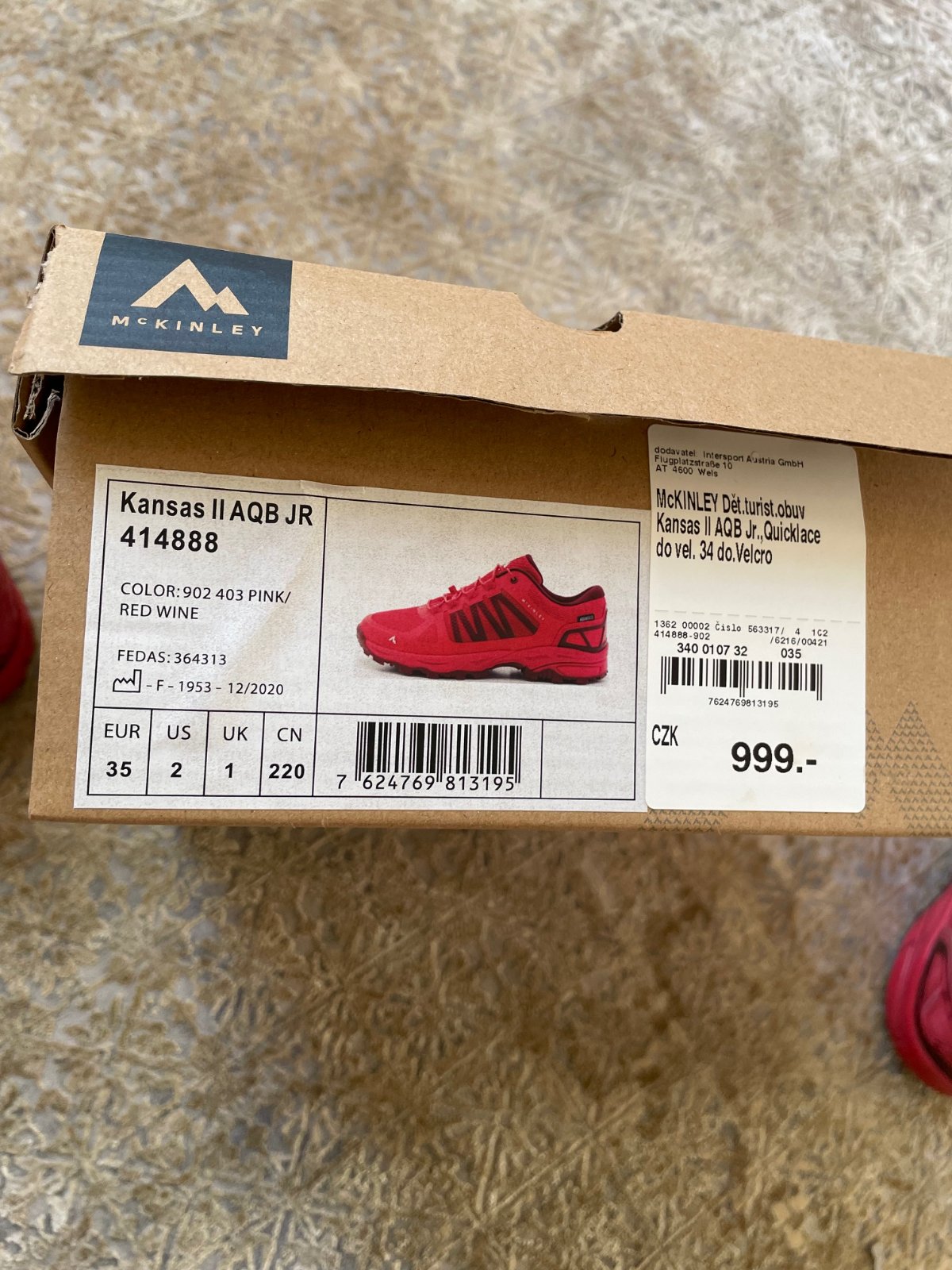 Prodám dětské turistické boty zn. McKINLEY Kansas II AQB JR ve vel. 34 s technologií AQUABASE® poskytující základní ochranu proti větru a dešti.