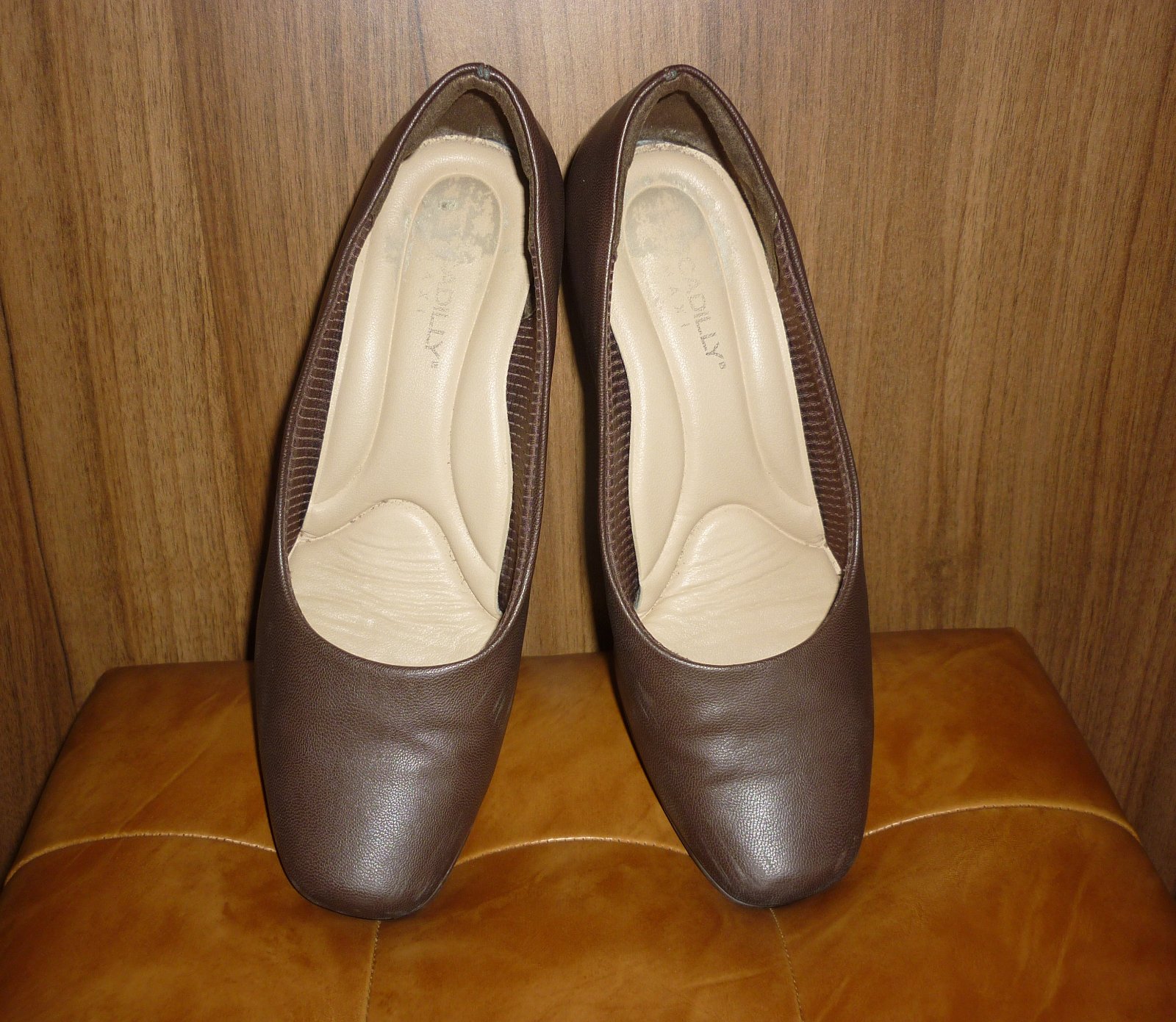 Prodám dámské hnědé lodičky brazilské značky Piccadilly, nošené, v dobrém stavu. Jedná se o velmi luxusní, lehkou, flexibilní a komfortní obuv. Špička je zakulacená. Mají gelové opatky, které chrání paty před otlaky. Stélky rovnoměrně rozvádějí tlak na chodidlo a tlumí silné nárazy při došlapu, tím chrání klouby dolních končetin a páteř. Stélky jsou antibakteriální a antimikrobiální a zabraňují vznikání nepříjemných pachů. Materiál svršku je kvalitní syntetika. Podšívka je z funkčního materiálu - kontrola teploty a vlhkosti stélky, mají antibakteriální a antimikrobiální úpravu - likvidují pachy. Podpatek 6,5 cm vysoký, nepotahovaný, elegantně linkovaný. Velikost: 39. Vnitřní stélka 25cm. Běžné známky nošení. Cena: 230,-Kč + poštovné. Koukněte na moje další inzeráty, třeba si něco vyberete a ušetříte na poštovném. Tel.: 728 455 567