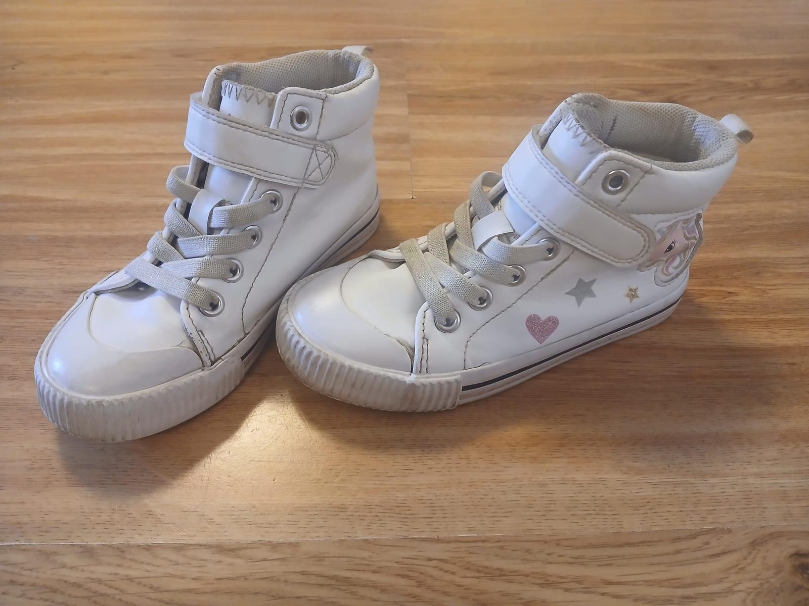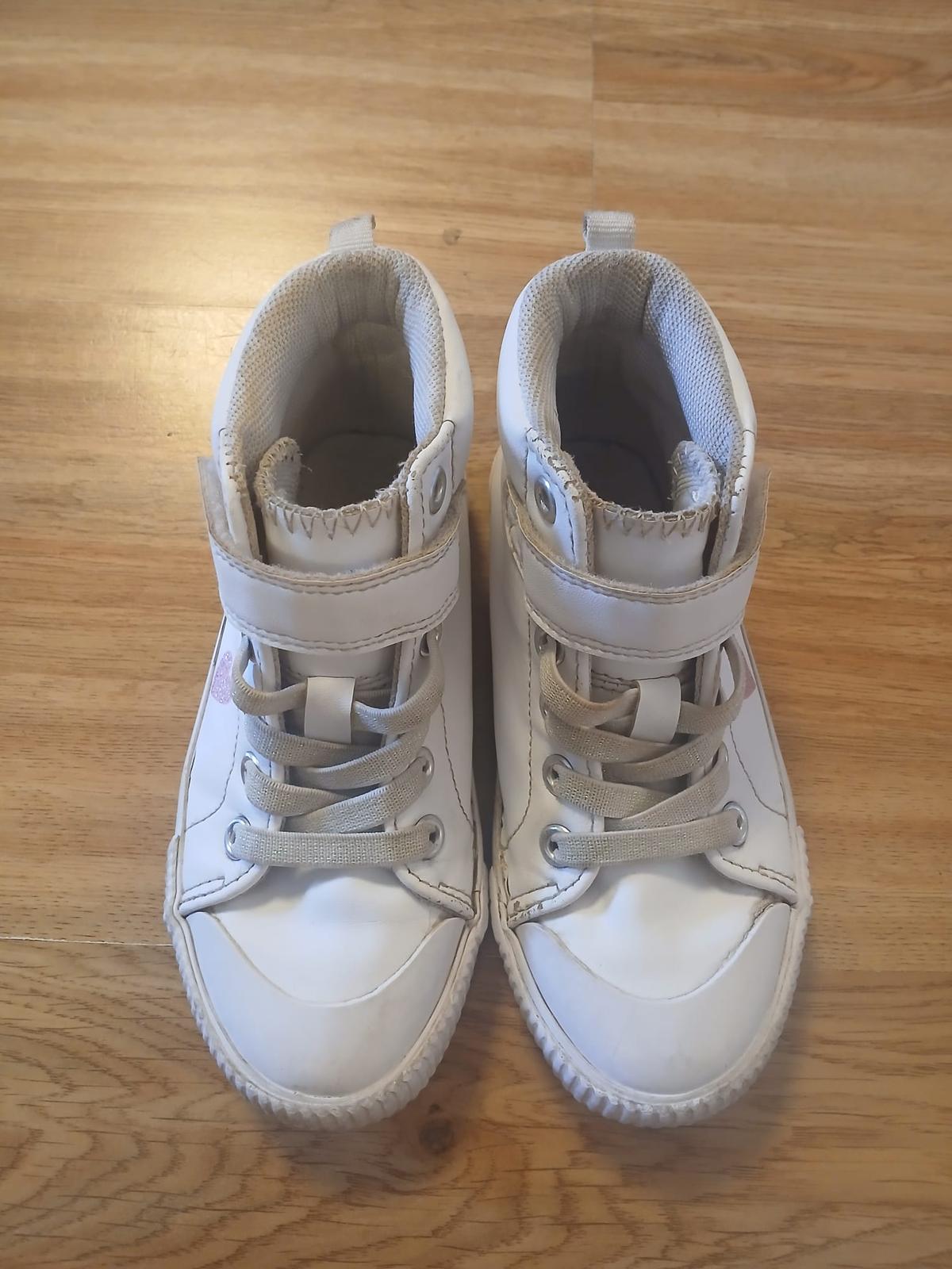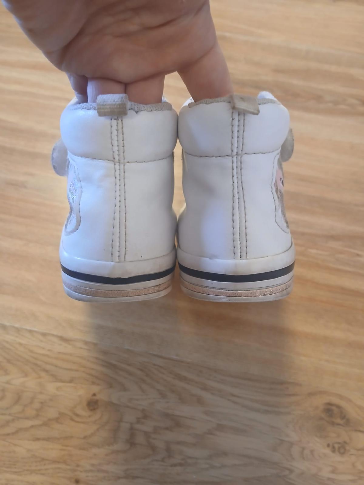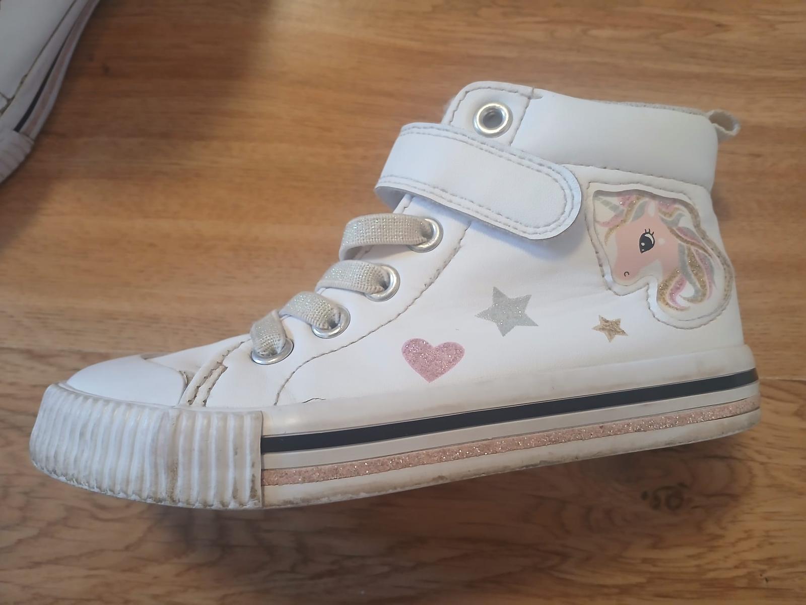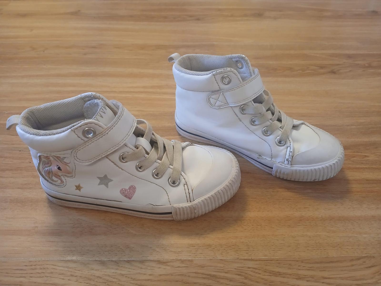intenzivně nošené do školky a na hřiště, špičky dost ošoupané, už jen na lítačku, vel. uvedena 28, stélka vyndavací 18,2cm, podrážky v pořádku