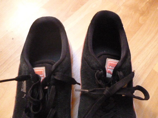 nošené, pěkné, černé s růžovou,pěkné, stélka je 24 cm, psaná vel. 38 zn.Puma