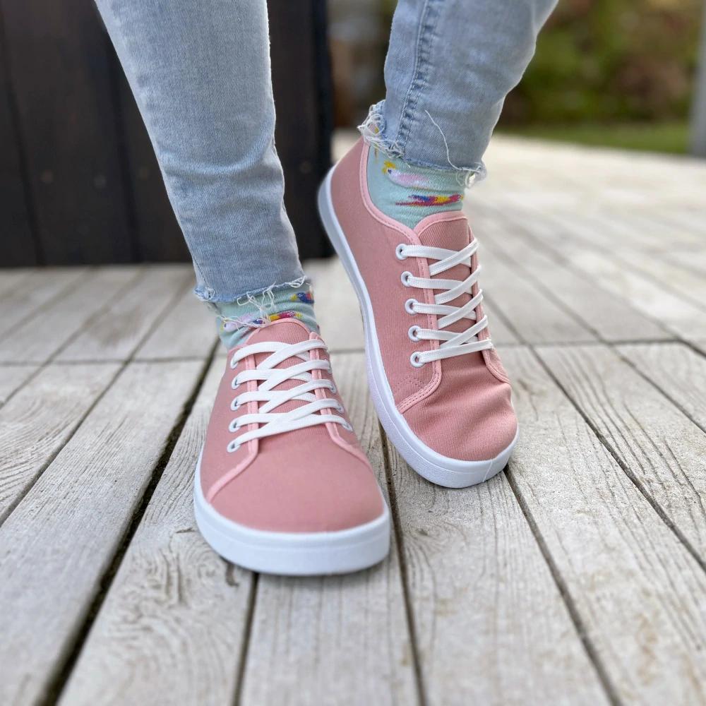 Dámské barefoot tenisky Anatomic. Svršek je z 2-vrstvé recyklované bavlny zajišťuje odolnost, vzdušnost a maximální poddajnost. Recyklovaná bavlna pochází se starých oděvů a textilních zbytků, které se rozemelou na vlákna, spředou do nové příze a utkají do nových látek.
