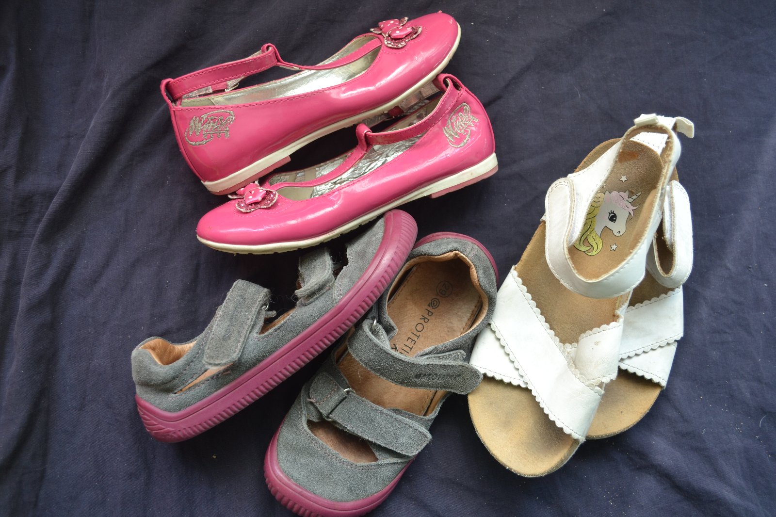 3x dívčí sandály: v.29 Protetika-kvalitní kožené měkké,na suché zipy,stélka 18cm,šedé+ růžové balerínky v.29,stélka 18cm+ bílé lehoučké sandály ,stélka 19-19,5,na suchý zip,všechny více nošené, cena celkem oba páry,šedé uprostřed nejsou