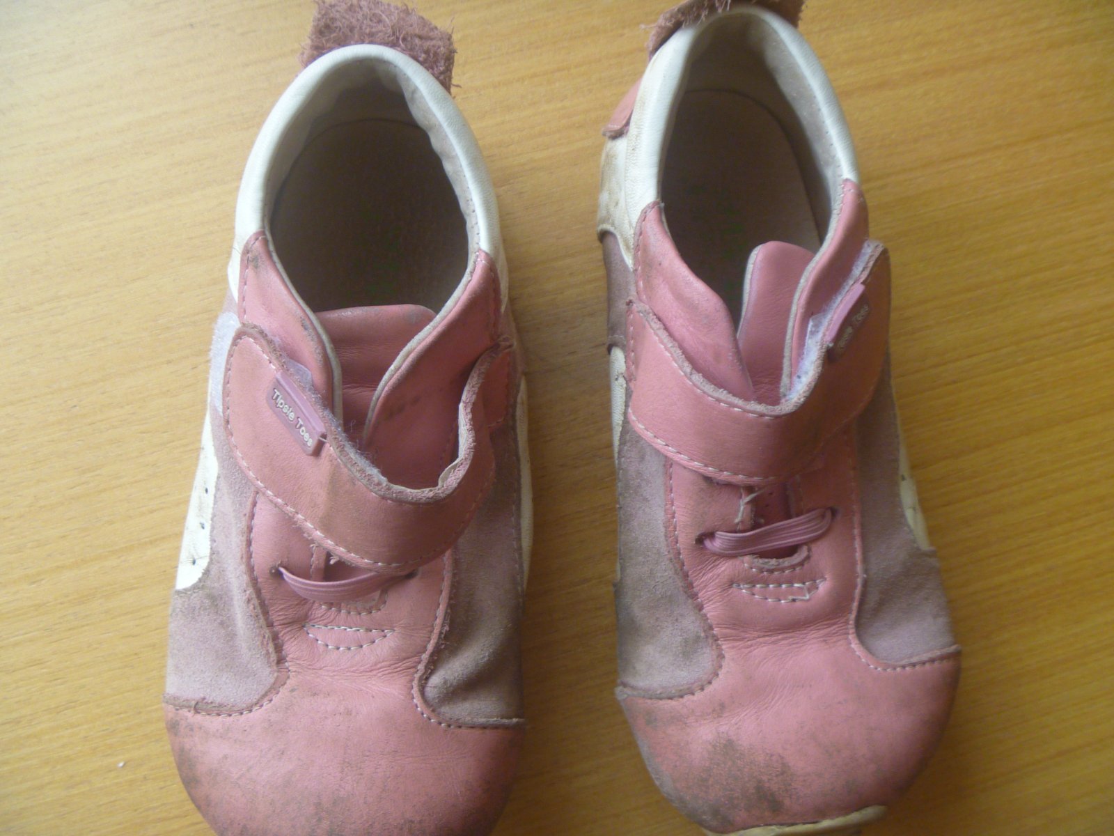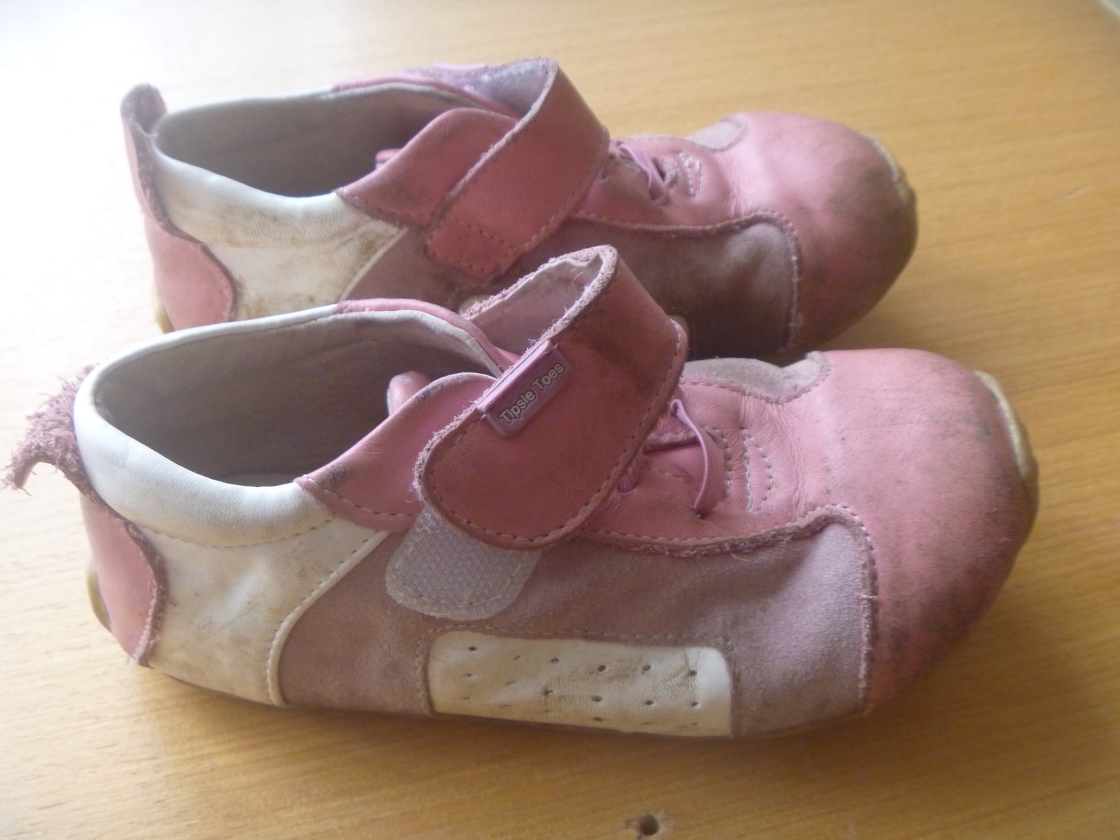 Prodám růžovobílé barefoot tenisky , zapínání na suchý zip, velikost uvedena 28, délka podrážky cca 19 cm (stélku nelze vyjmout a ruku do boty dám jen těžko, naměřila jsem cca 17 cm), odpovídá velikosti cca 27, okopané, hodně nošené.