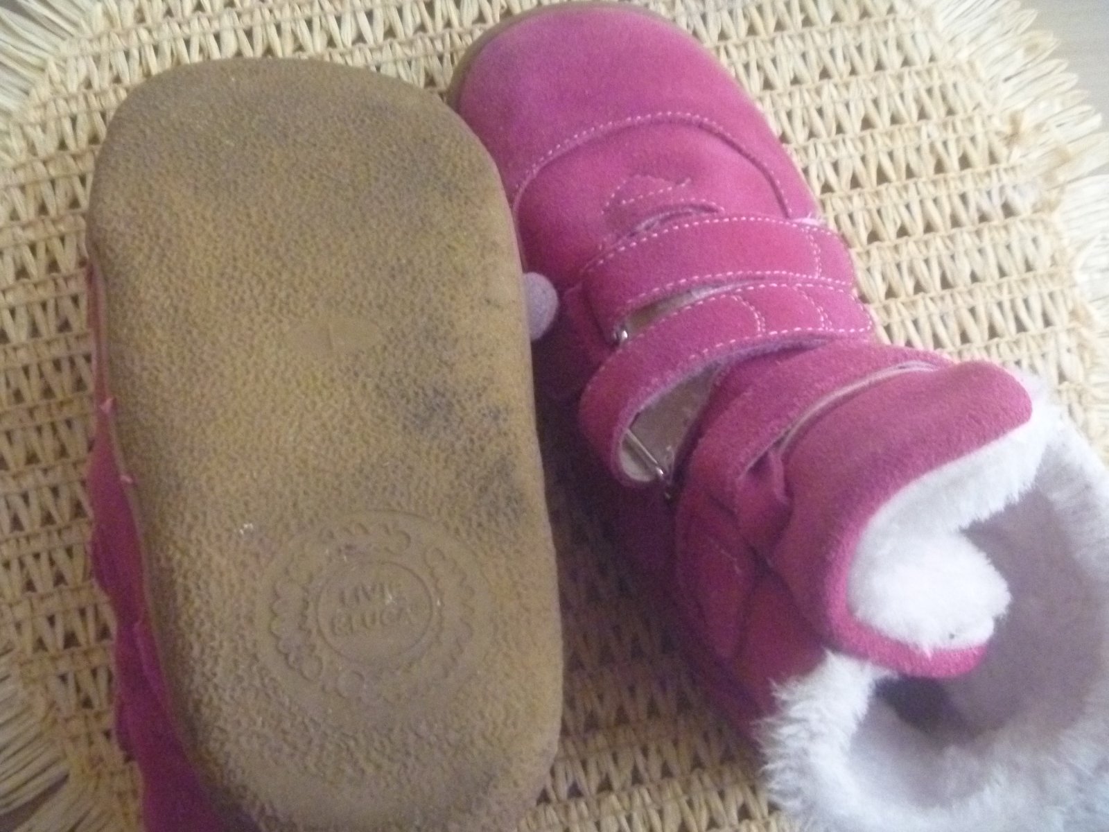 Prodám růžové barefoot polovysoké zimní dívčí zateplené boty, zapínání na suchý zip, z Aliexpresu, značka Tipsie Toes, velikost 1, vnitřní délka 20,4 cm, odpovídá velikosti cca 31, dobrý stav