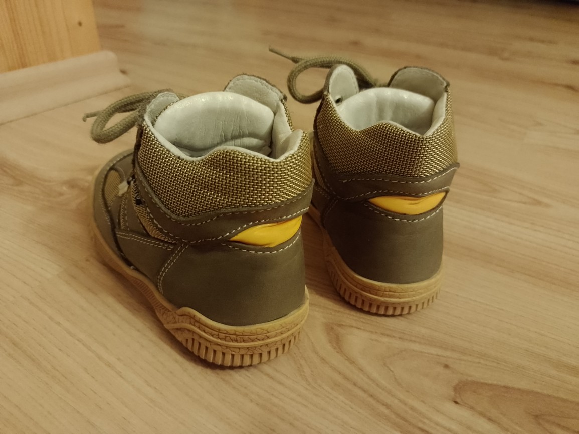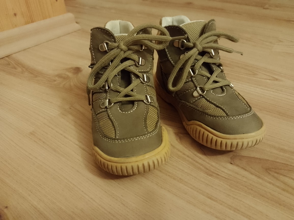 Prodám velice pěkné nepoškozené kožené kotníkové boty Santé, vel. 26, barva khaki, stélka 17 cm.