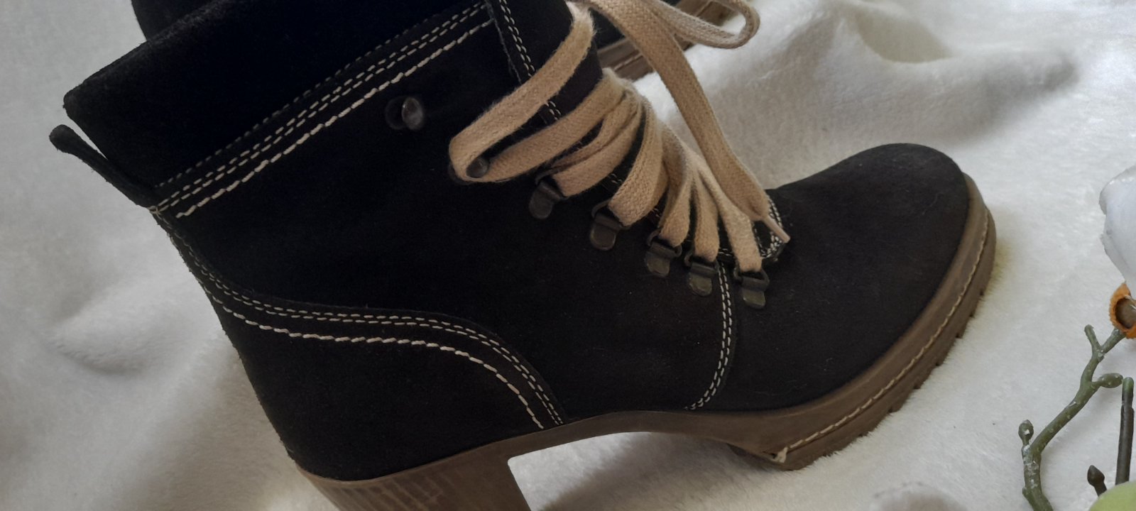 Dámské kožené šněrovací nízké kozačky Lasocki