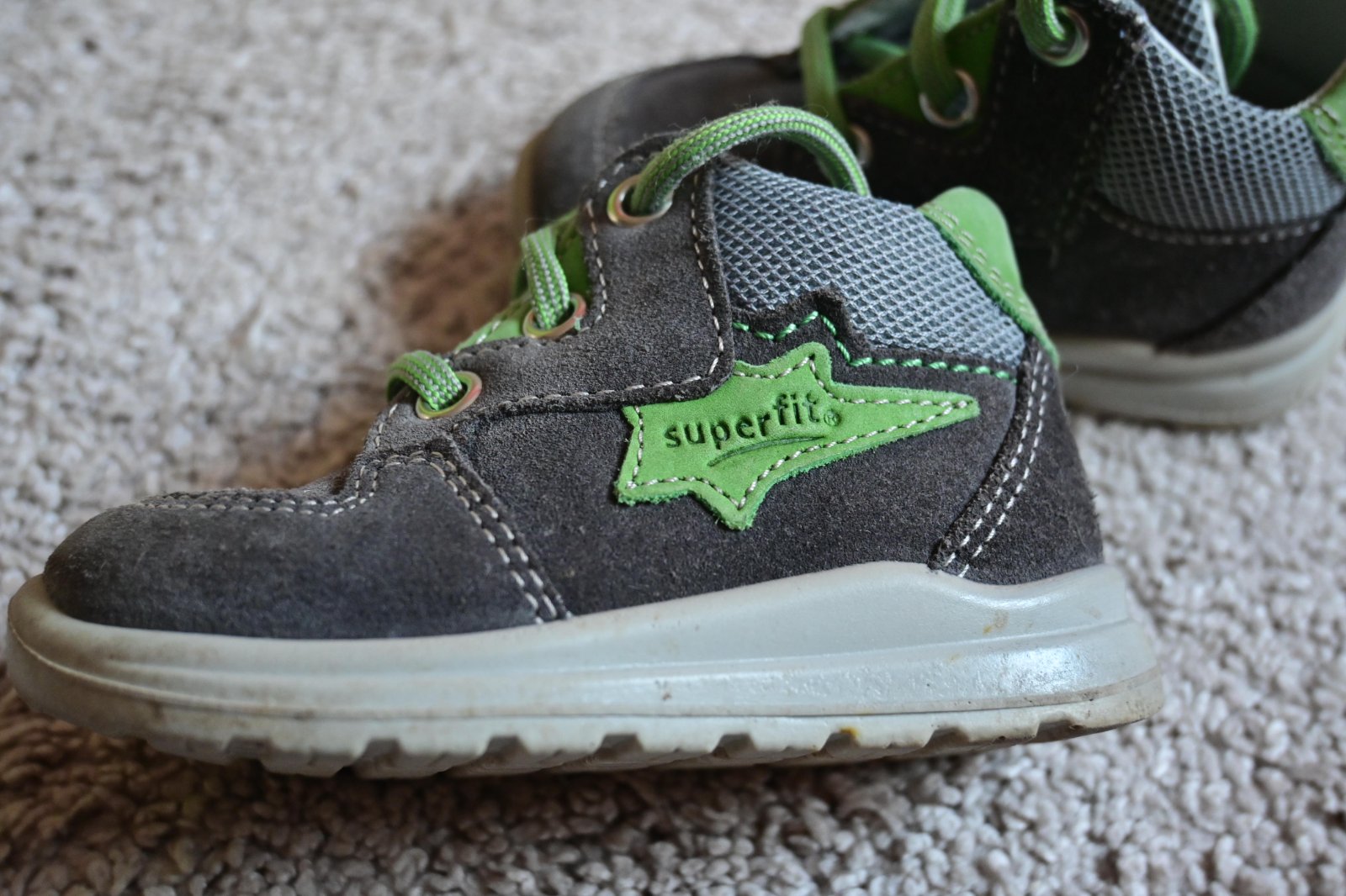 Prodávám kamarádce, kožené botičky Superfit, krásný stav, špičky nepatrně okopané, ale není to téměř vidět, neonové tkaničky, délka stélky dle jejich doporučení s vůlí 11,5 cm