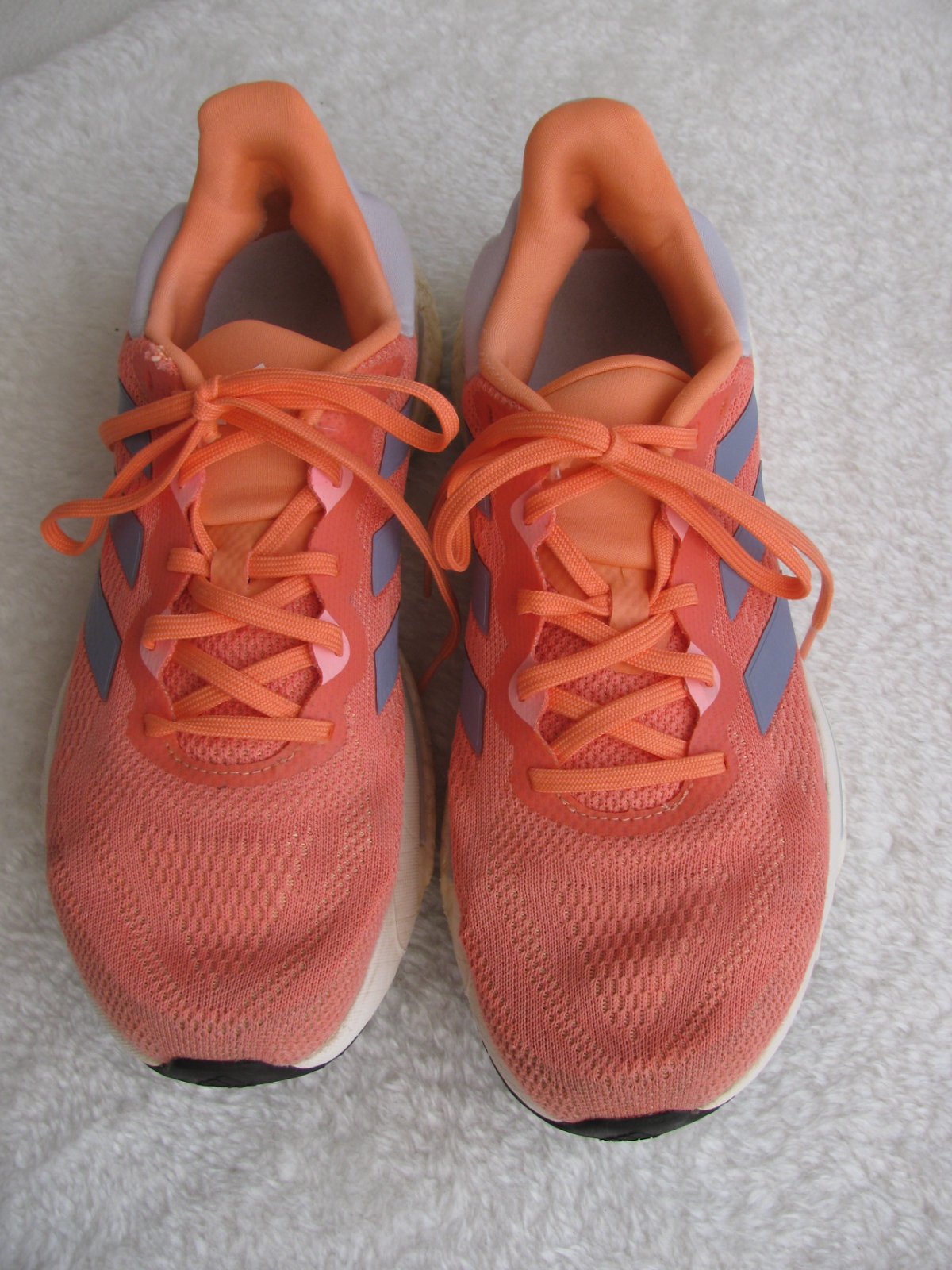 Skvělé sportovní i běžecké boty, barva lososová, svršek syntetika, síťovina, podešev z gumy Continental™ zaručí výjimečnou přilnavost na mokrém i suchém povrchu. Mírně párle u lemu kolem kotníku jak je tkanička-viz foto, není to nic významného, přesto raději upozorňuji pro pořádek, jinak bez vady, krásný stav. Boty jsou ručně vyprané.