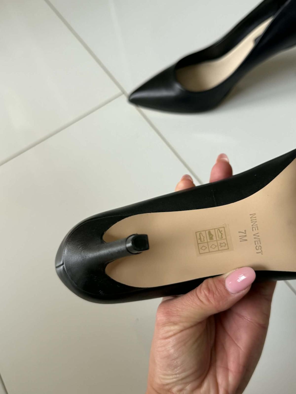 T445 Černé jehlové lodičky vel. 37 délka stélky 24 cm - měřeno až po špičku, výška podpatku 11,5 cm, Bez vad.