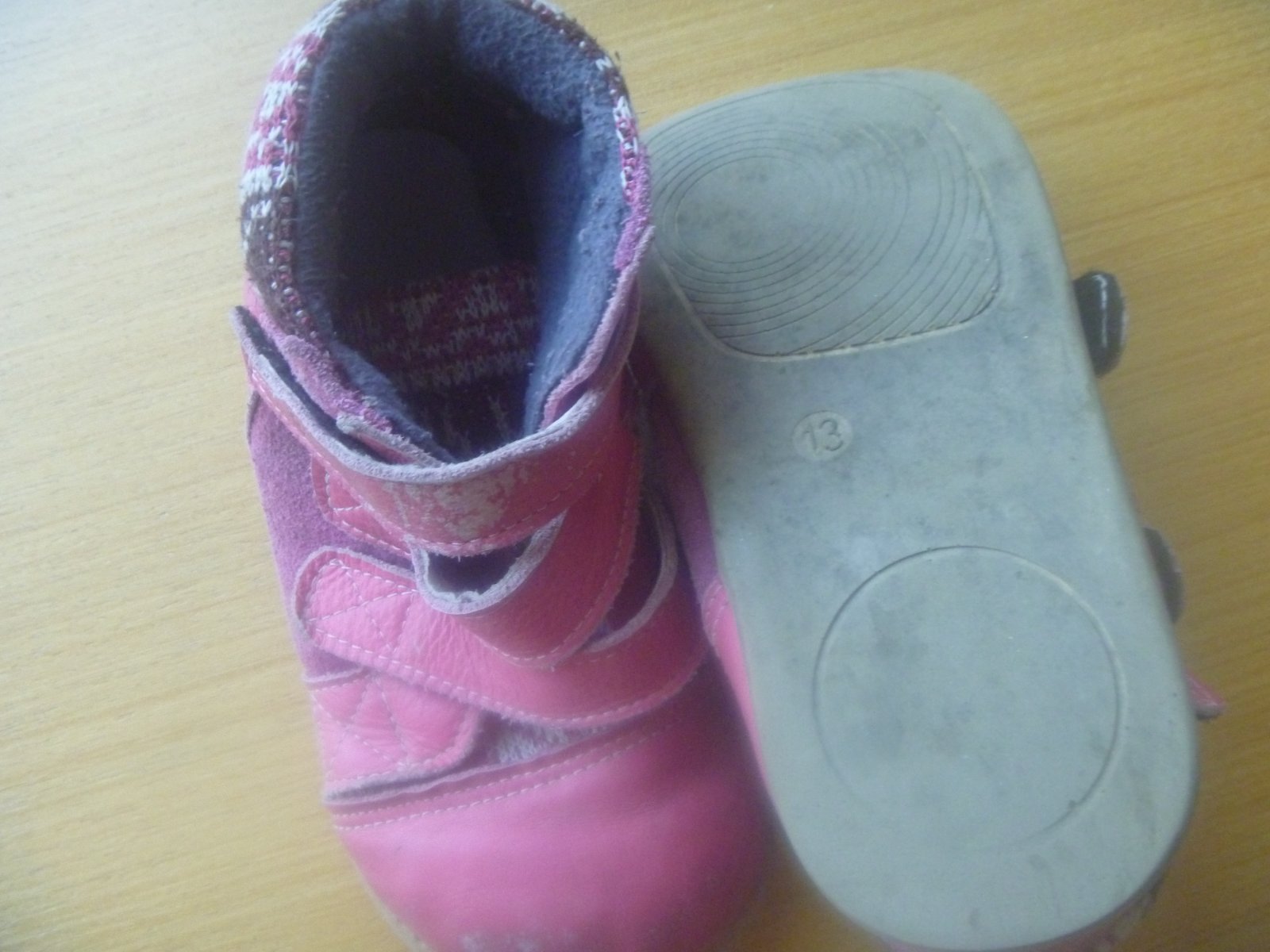 Prodám růžové koženkové barefoot vyšší/ kotníčkové boty na suchý zip, kombinované se semišem, uvnitř fleese, velikost uvedena 13, délka stélky 18 cm, odpovídá cca vel. 27, okopané špičky, z Aliexpresu, jinak dobrý stav.