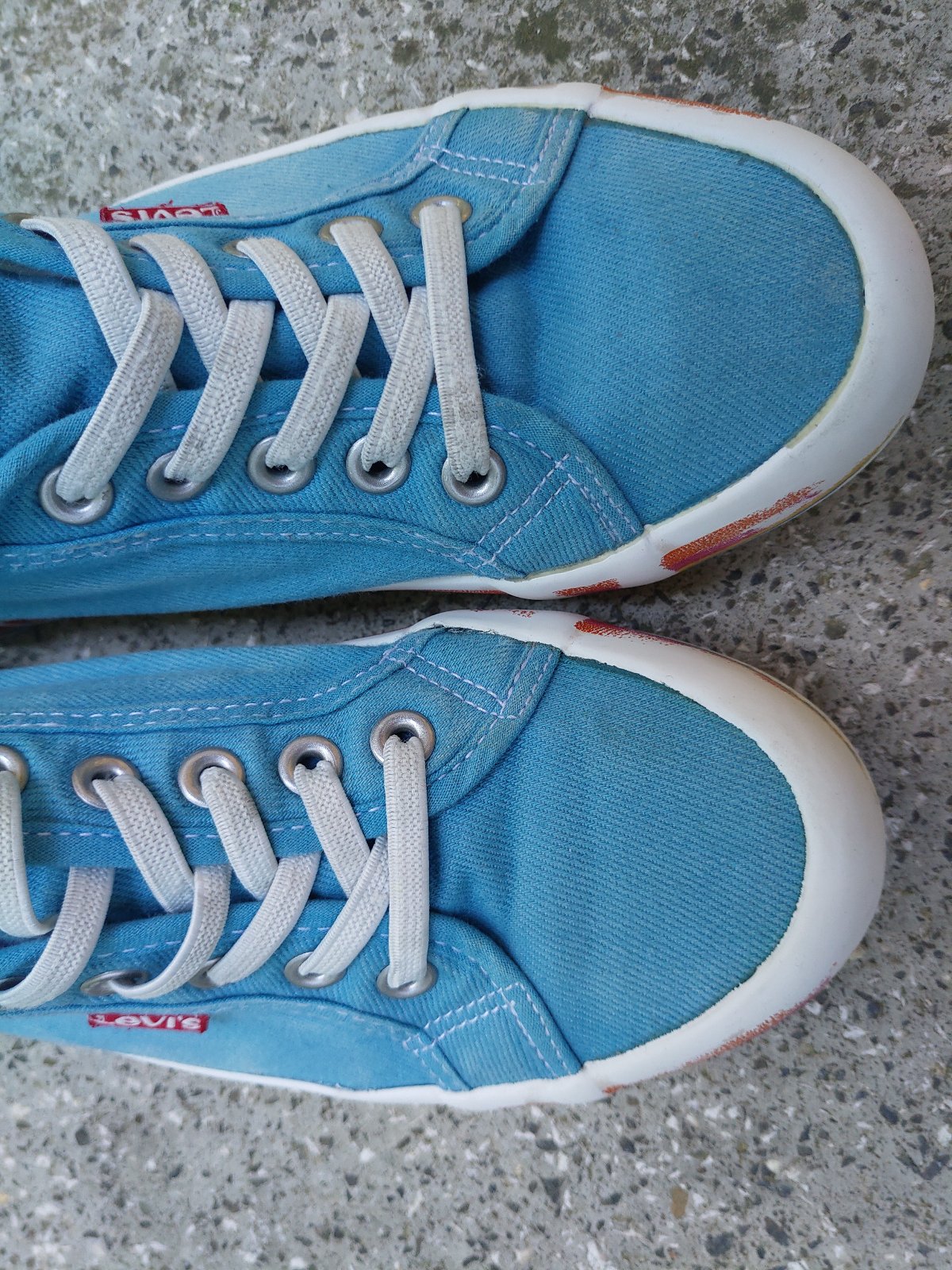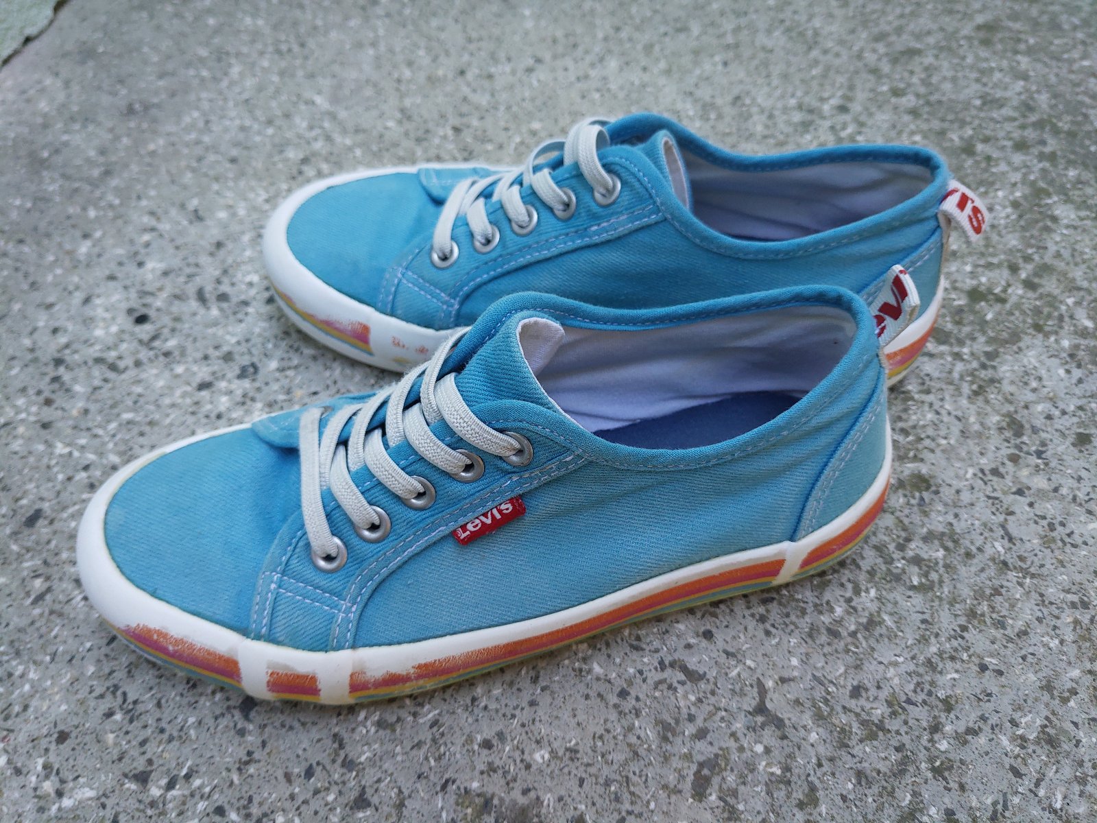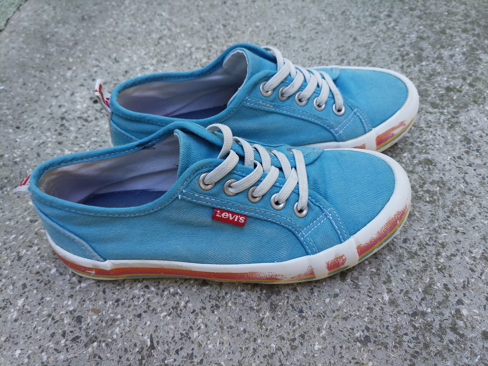 Nabízím nošené tenisky Levis pearl, koupené v Itálii. Tkaničky jsou gumičkové. Stav viz foto.
