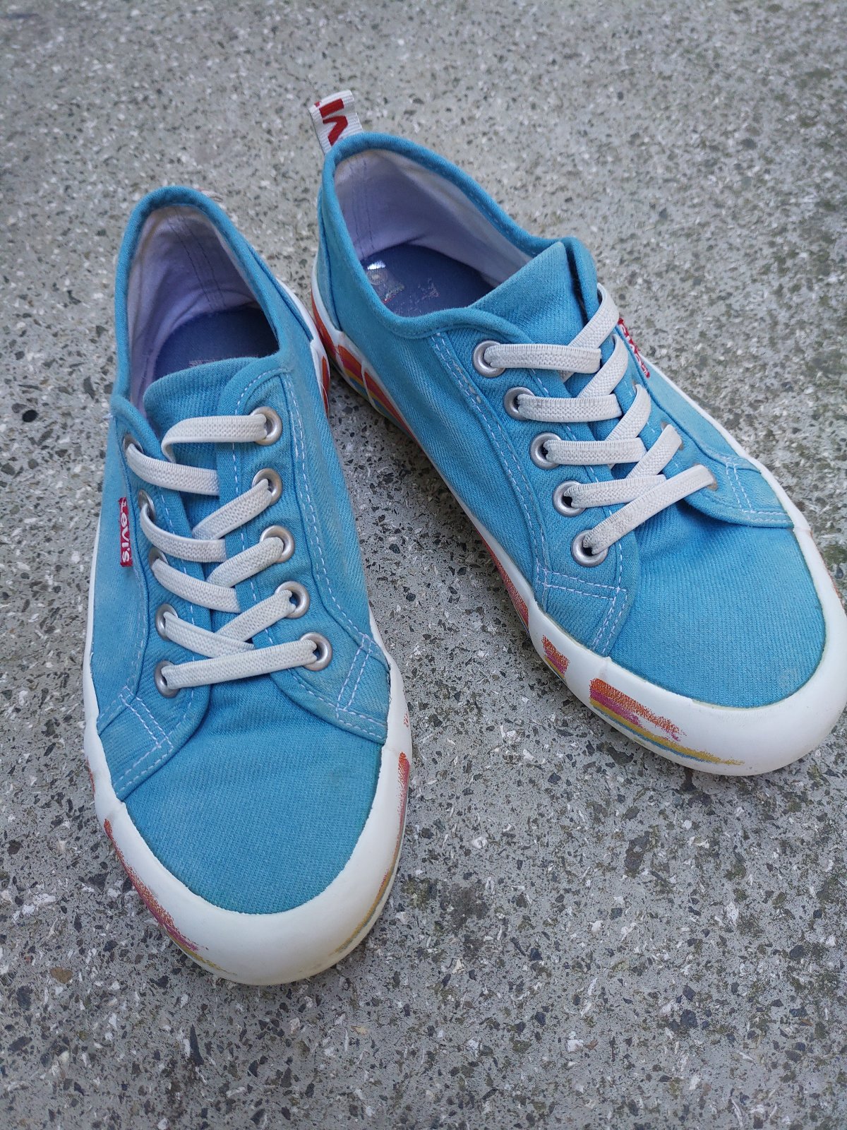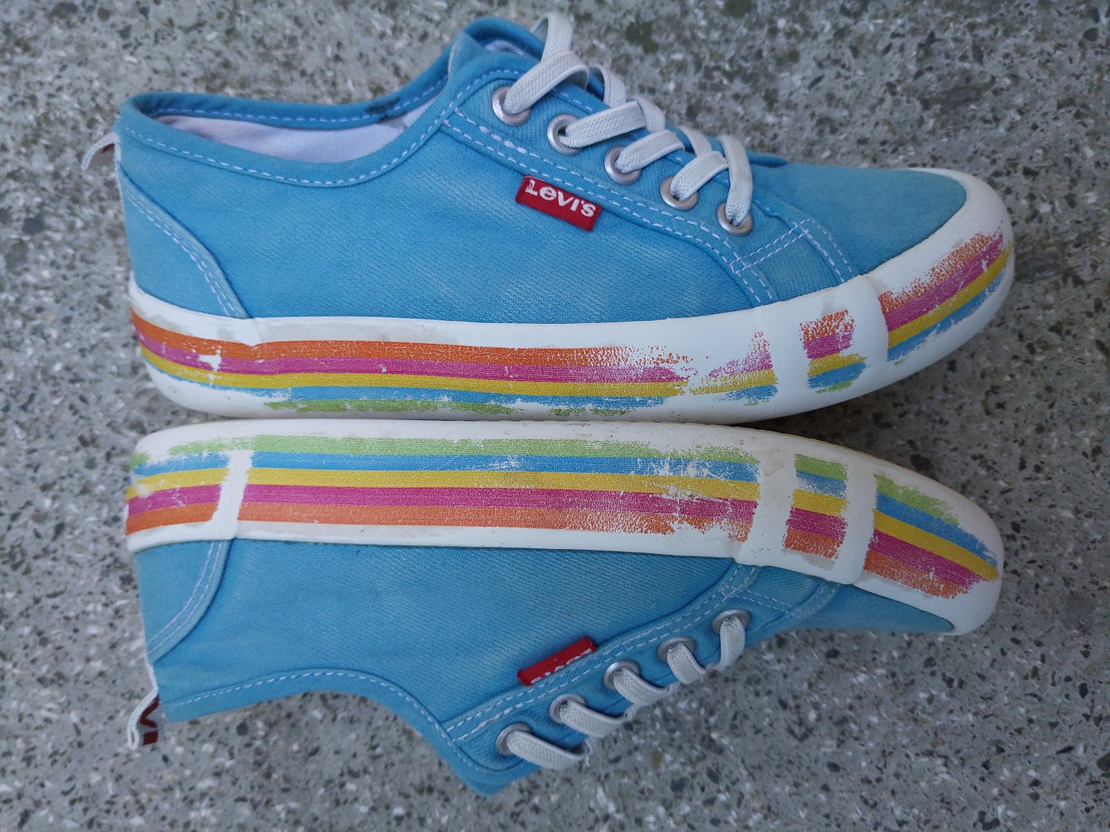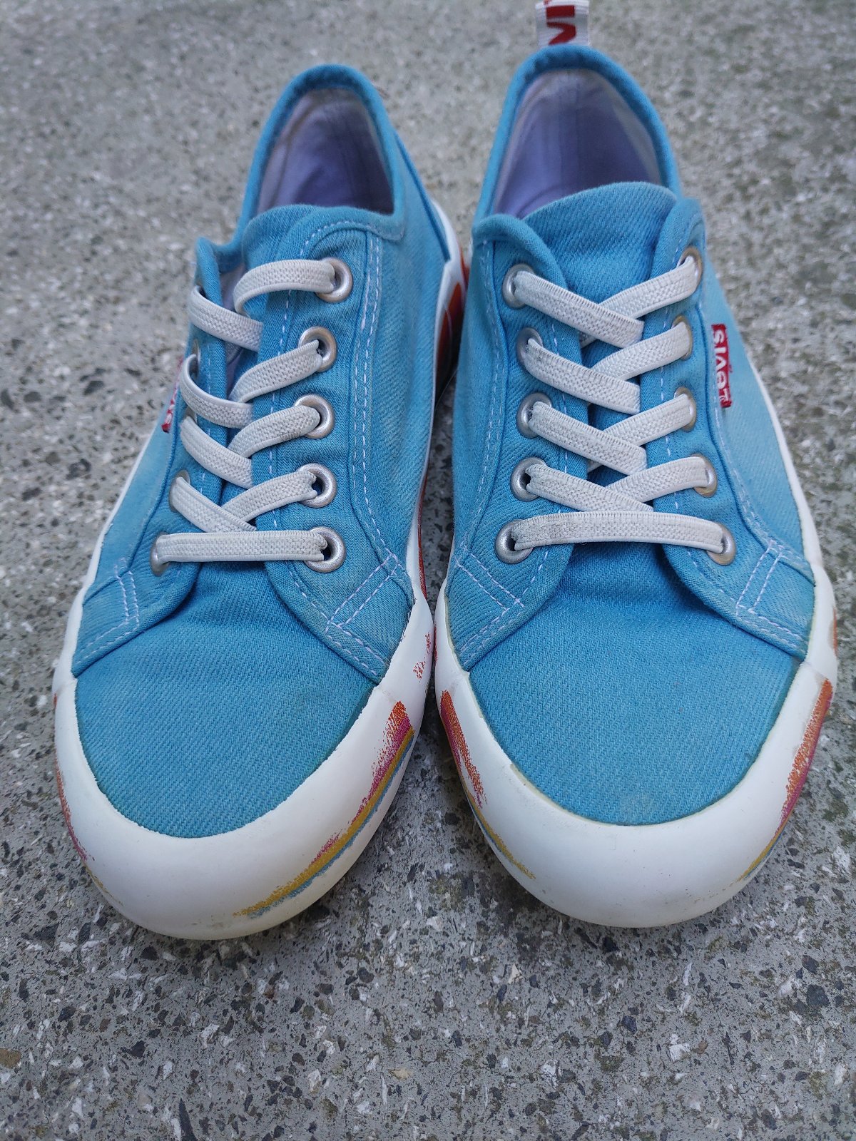 Nabízím nošené tenisky Levis pearl, koupené v Itálii. Tkaničky jsou gumičkové. Stav viz foto.