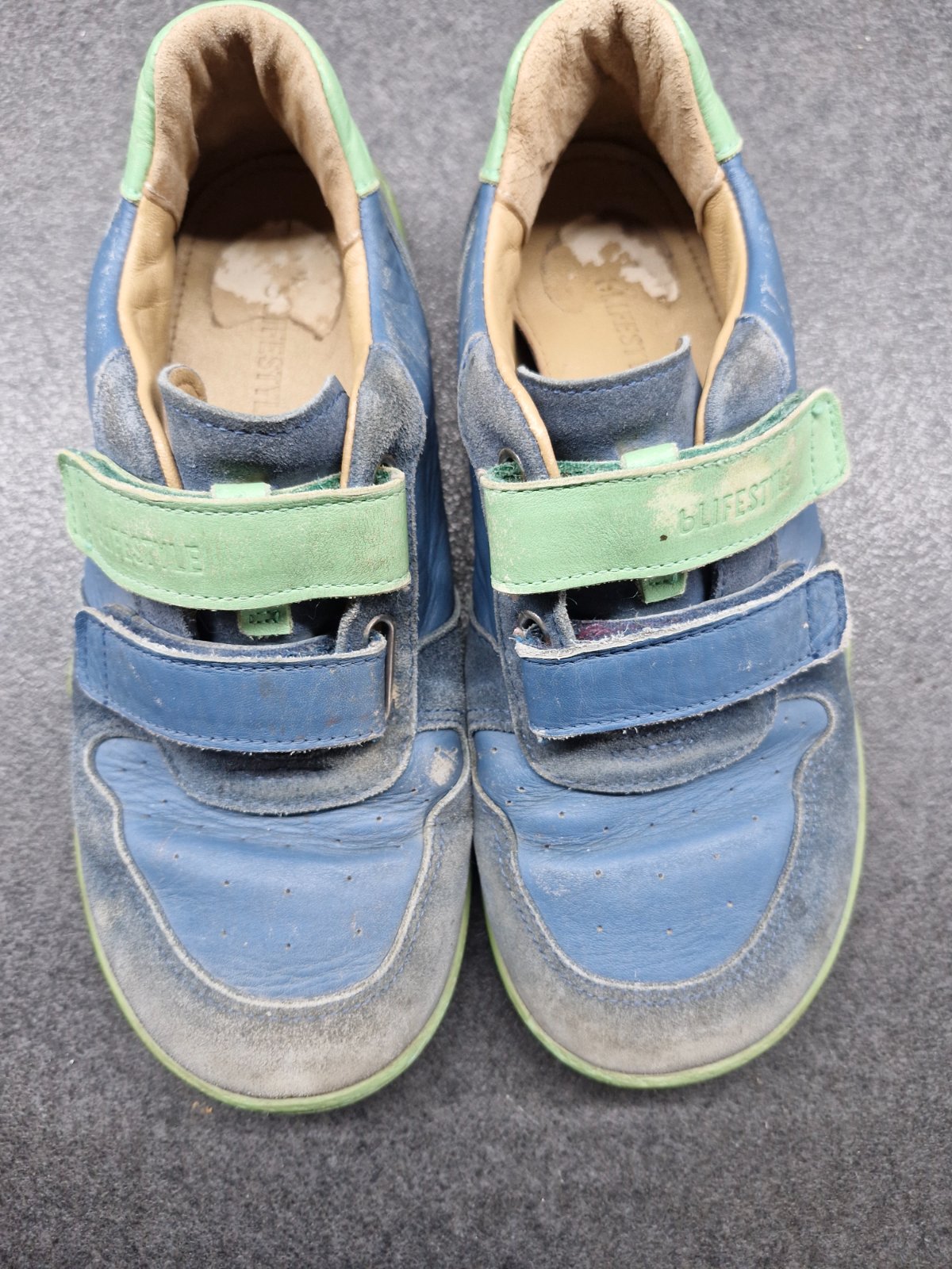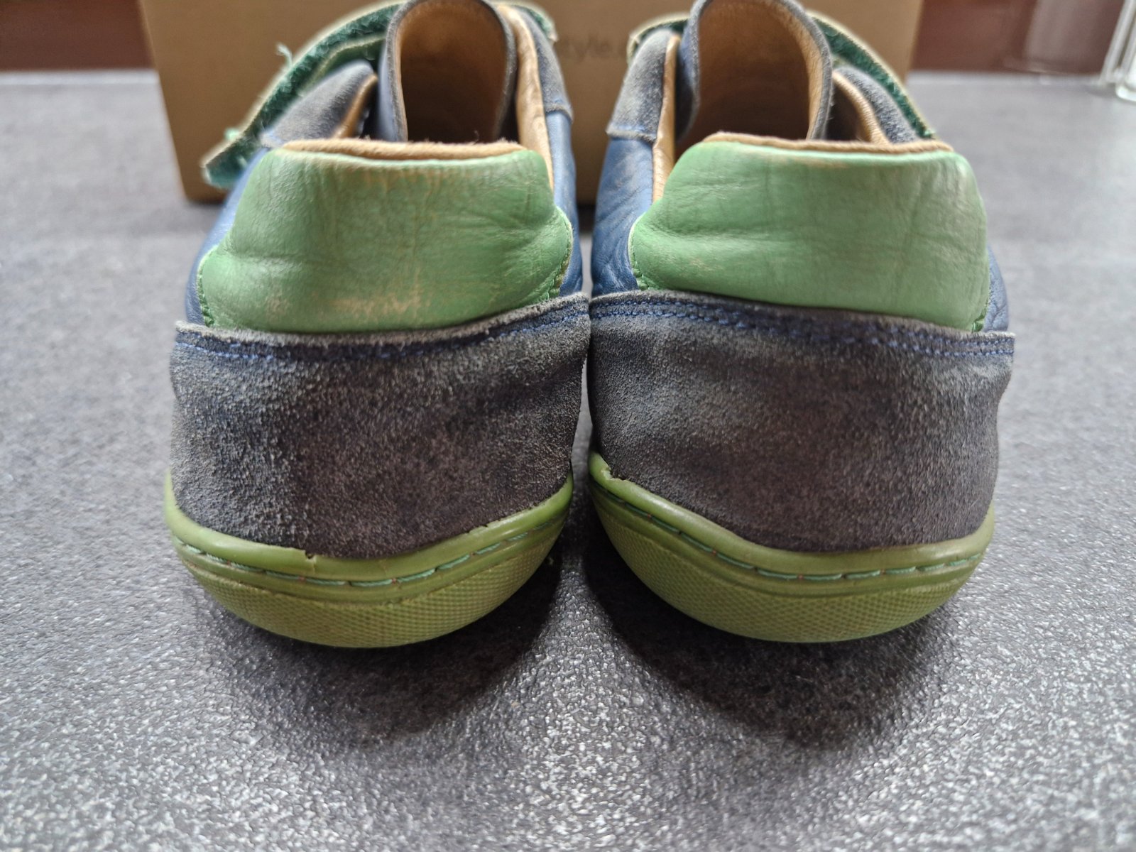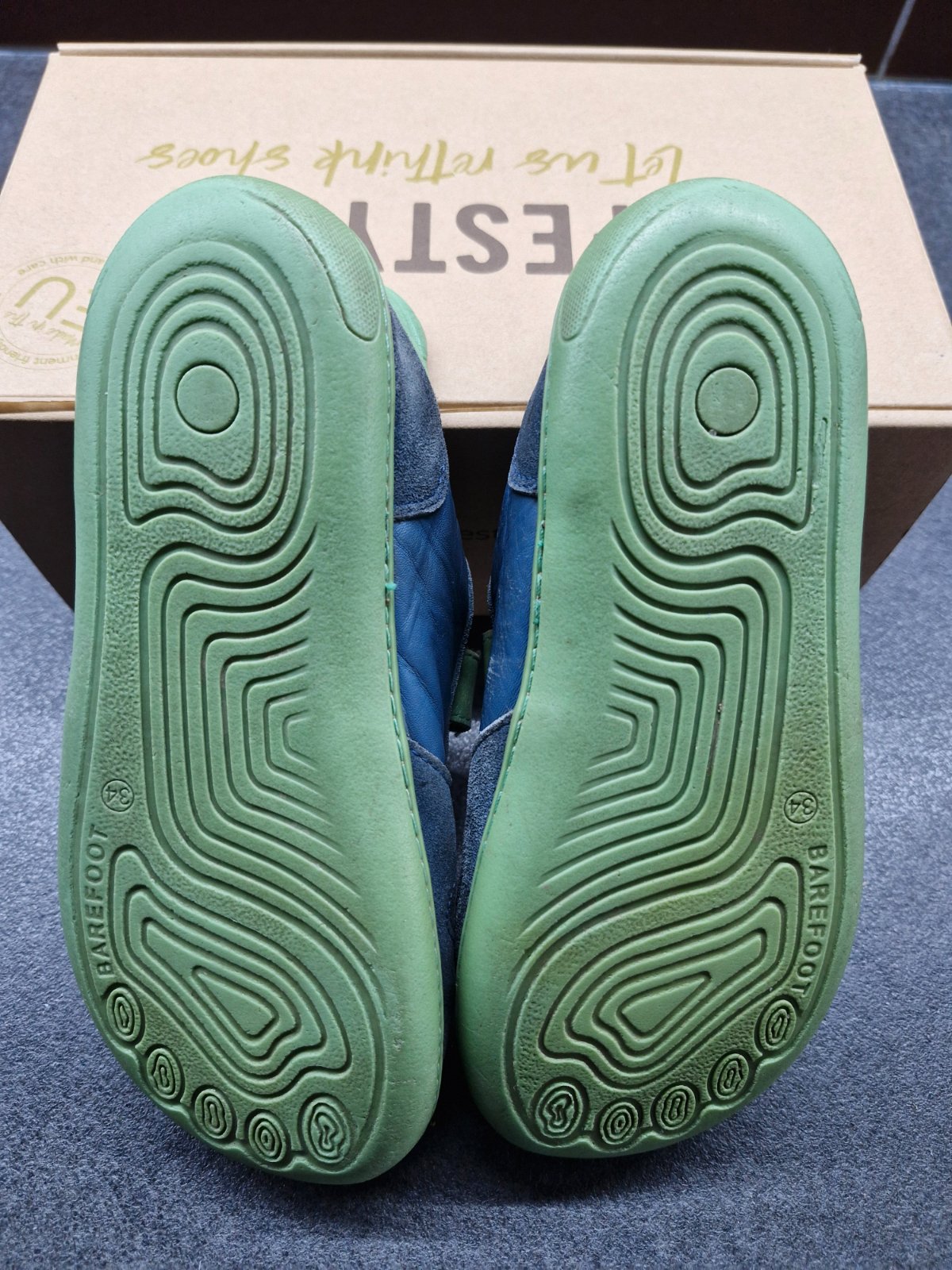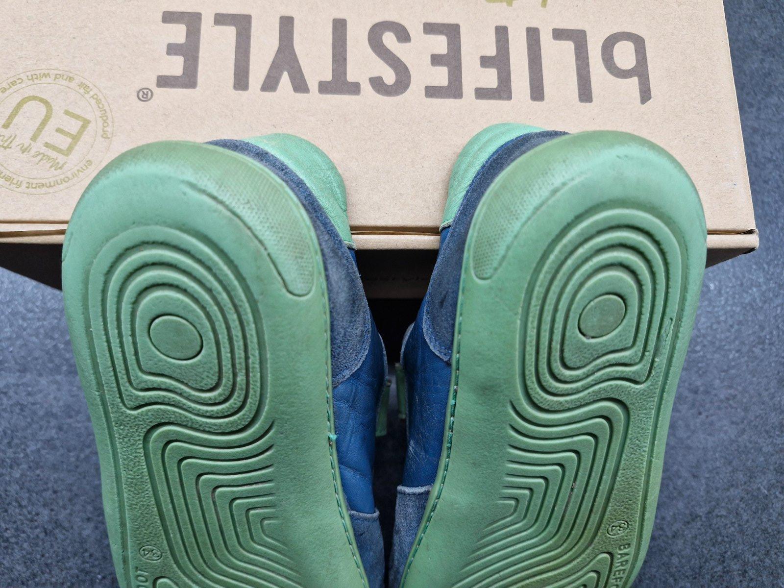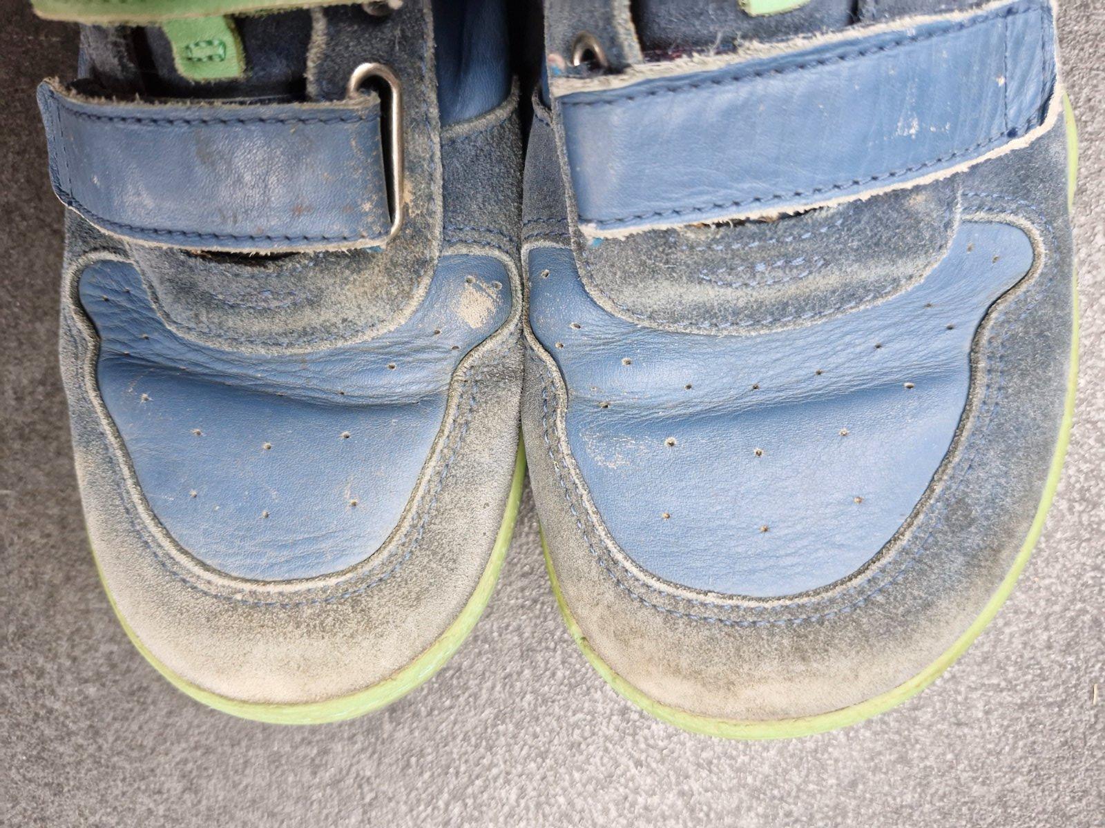 Barefoot kožené celoroční boty, velikost 34 (VD 225, VŠ 82 mm), značla bLIFESTYLE. Nošení je nejvíc znát na kůži, která je místy ošoupaná (viz. foto). Podrážka stále v dobrém stavu, pouze zbroušená část na patě.
