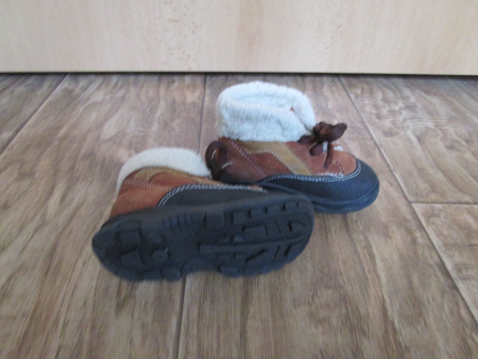 Pěkné hnědé kožené kotníčkové boty s kožíškem, č. 21, vnitřní stélka cca 13 cm, cen jen 129 Kč, nošené jen chvíli v kočárku, cena jen 149 Kč.