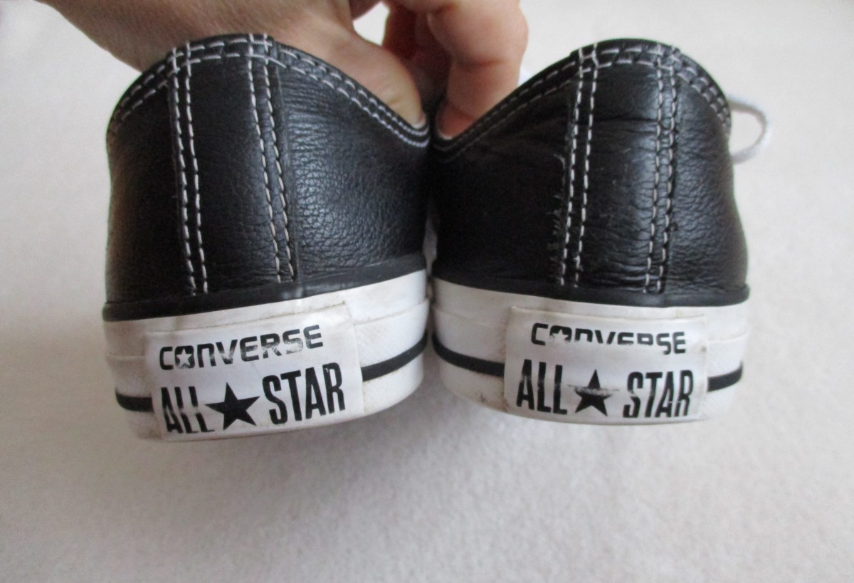 Prodám unisex conversky vel. 37,5, nošené krátce. Místy ušpiněná bílá místa a tkaničky, trochu šislé logo na patě, jinak bez vad. Svršek kůže, barva černá.