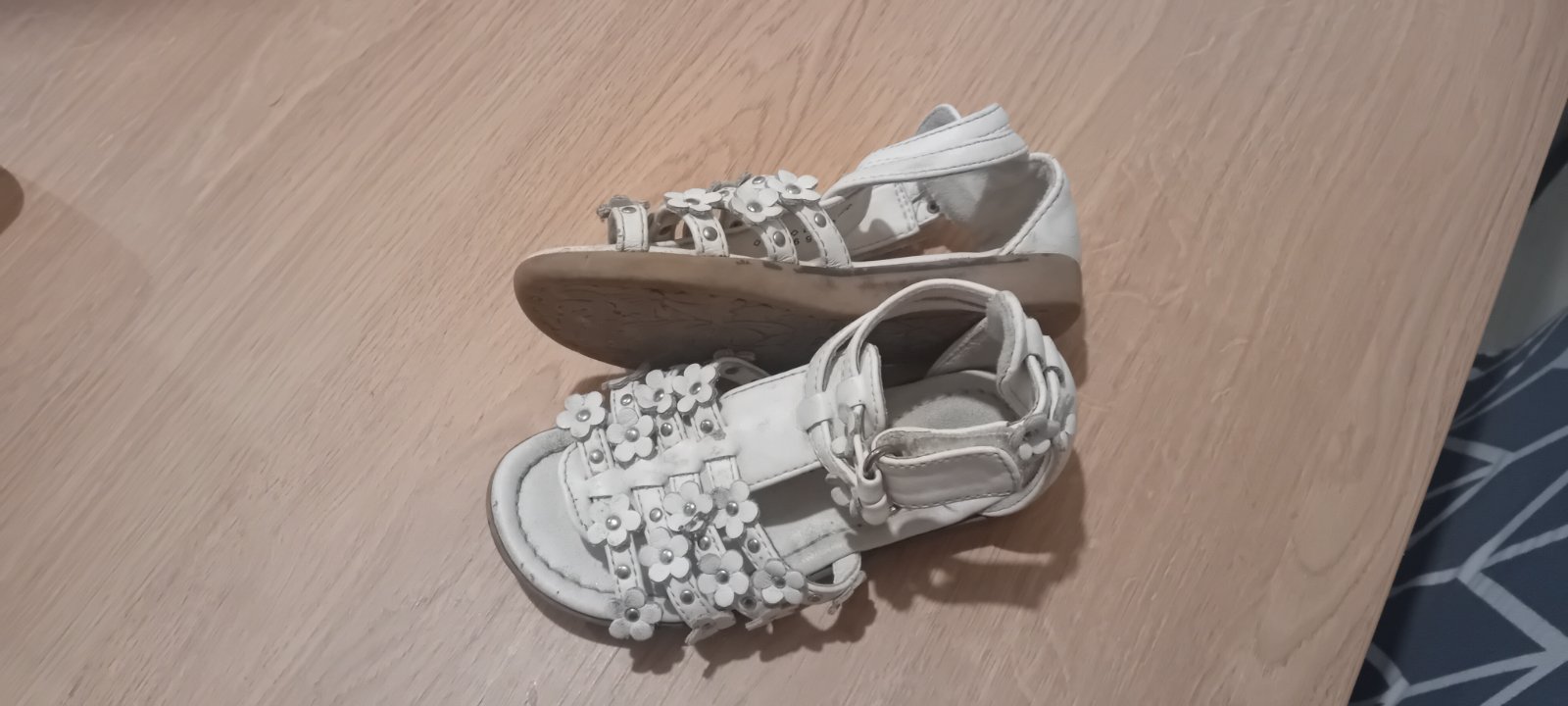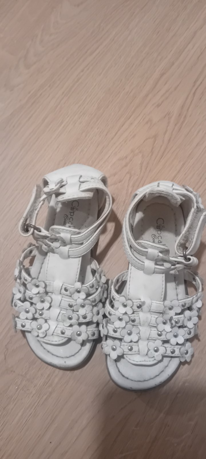 Prodám bílé sandálky jsou nošené trošku špičky odřené ale nic hrozného a na pásečkách bud minimálně odřené a nebo špinavé nezkoušela jsem to drbat . Délka stélky max 17 cm. Myslím,že parádu udělaj....