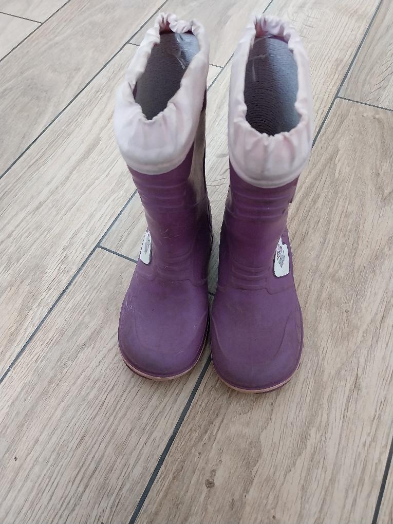 oteplené gumáky, vel. uvedena 26, ale jsou větší, vložila jsem dovnitř proužek kartonu o délce 17,5 cm, proto řadím do vel. 27, běžné známky nošení.