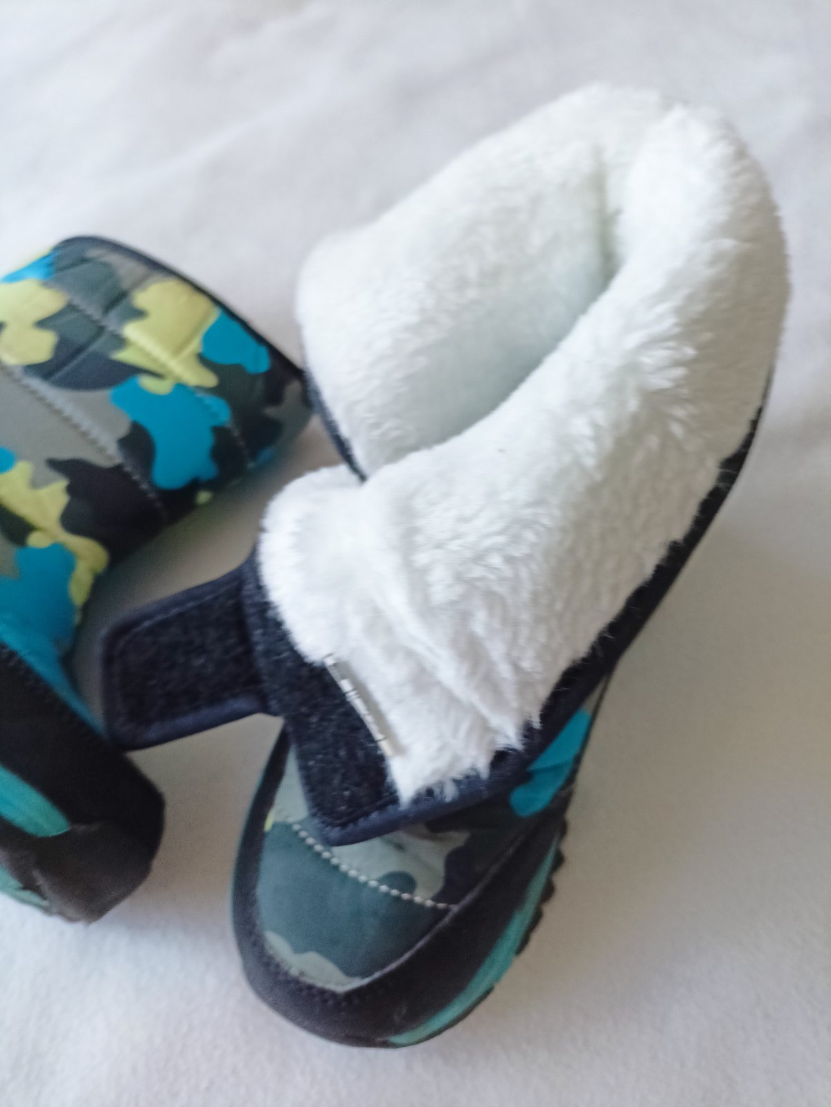 Prodám dětské zimní boty pro chlapce vel.32. Délka stélky je 20 cm. Maskáčový vzor. Snadné zapínání na suchý zip. Jsou lehké, teplé a nepromokavé.