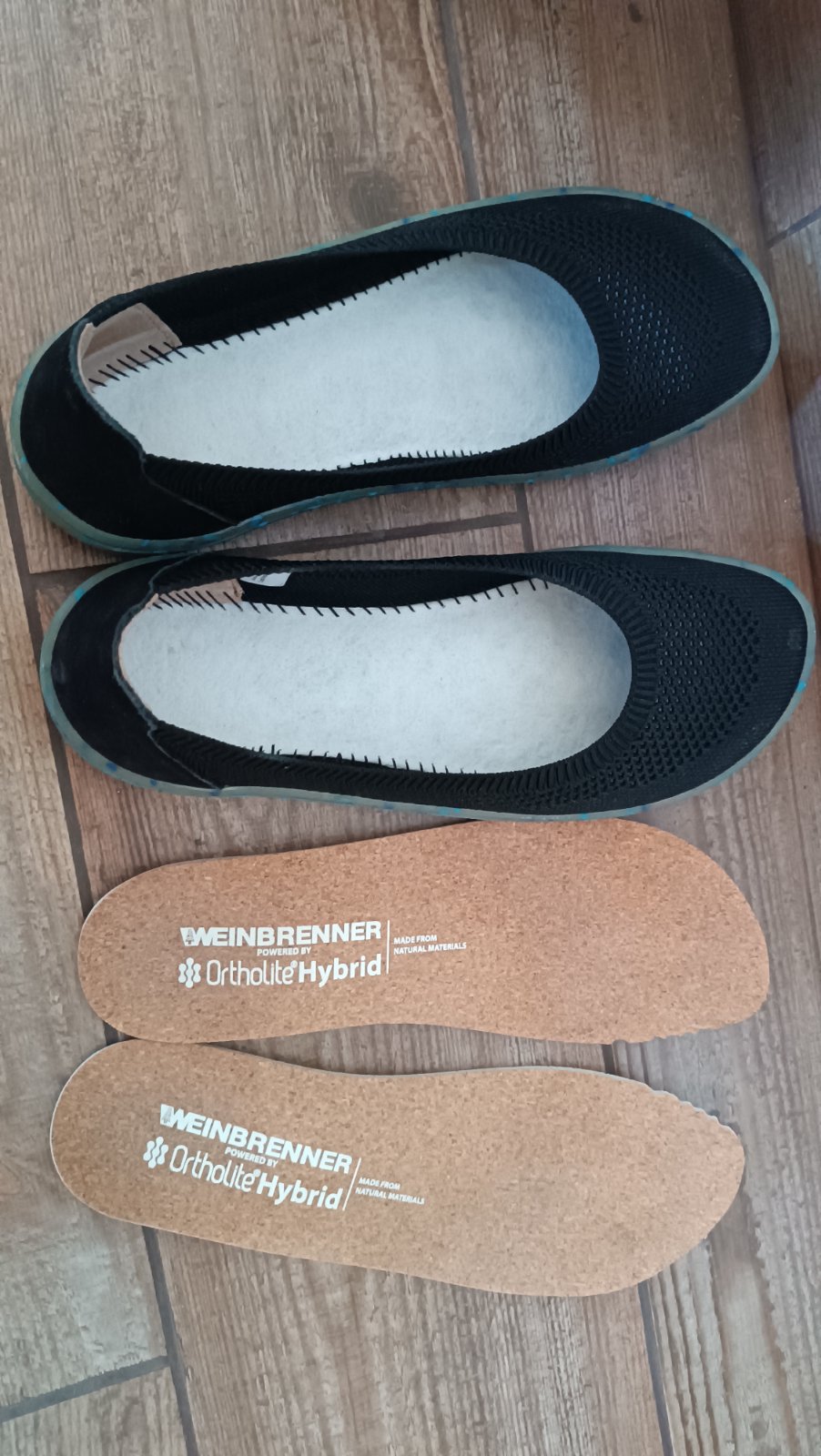 Značka Weinbrenner, kupované nové v Baťa - nouzově narychlo, nakonec jsme sehnali jiné, takže tyto byly jen zkoušené na chvíli chození na dvoře a po domě. Délka stélky vyfocená, stélka korková, velice příjemná, neklouže. Bota není úplně klasika barefoot, že by se zmáčkla celá do dlaně, ale je velice pružná, široká, pohodlná - svršek síťovaný textil, podešev extra pružná certifikovaná FSC recyklovaná syntetika. Nulový drop, ručně šitá konstrukce. vyjímatelná korková stélka Ortholite Hybrid. Účtenka ze 3.7.2025 - tedy platná záruka, jen už asi nemám origo krabici (kvůli skladování). Kupováno za 999 kč