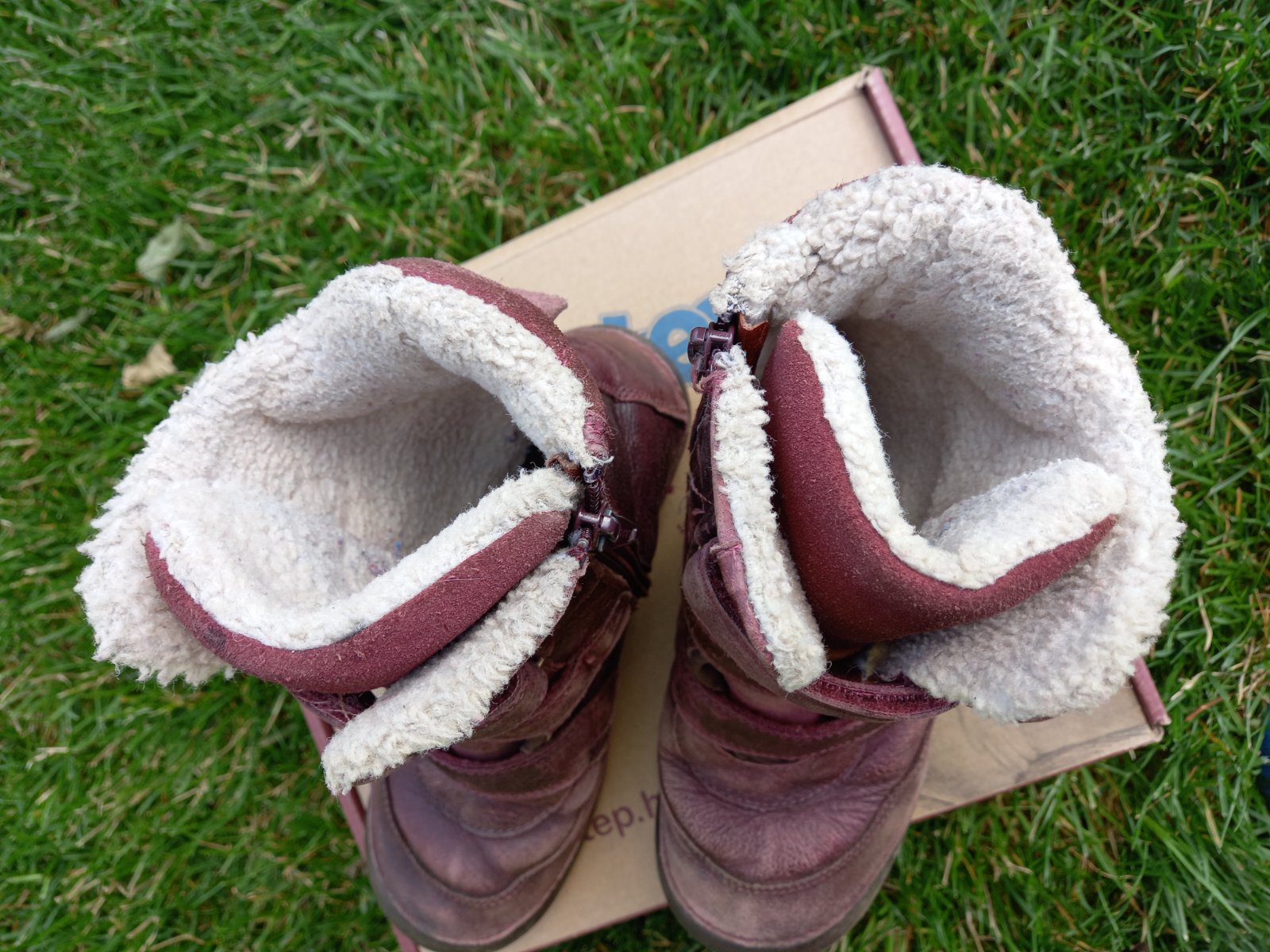 Nošené, krom světlé kůže bez vad. Na zahradu fajn. Jsou velmi teplé, zateplené kožíškem. Dcera neměla nikdy studené nohy. Vel. 34, ale jsou o něco menší, stélka 21cm. Zipy i suché zipy v pořádku.