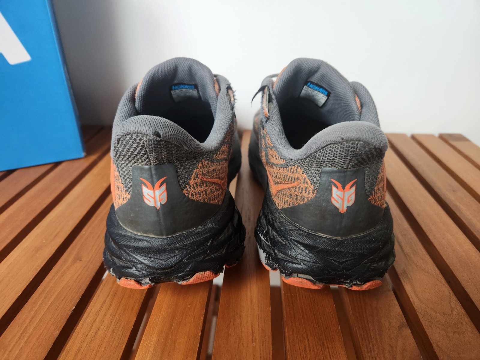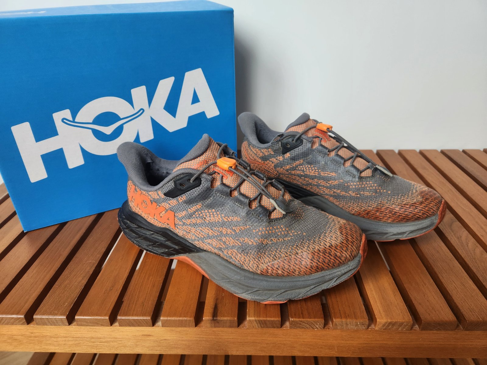 Šedivé tenisky s oranžovými prvky zn. HOKA, snadné obouvání, lehké, měkké, velice pohodlné, včetně orig krabice