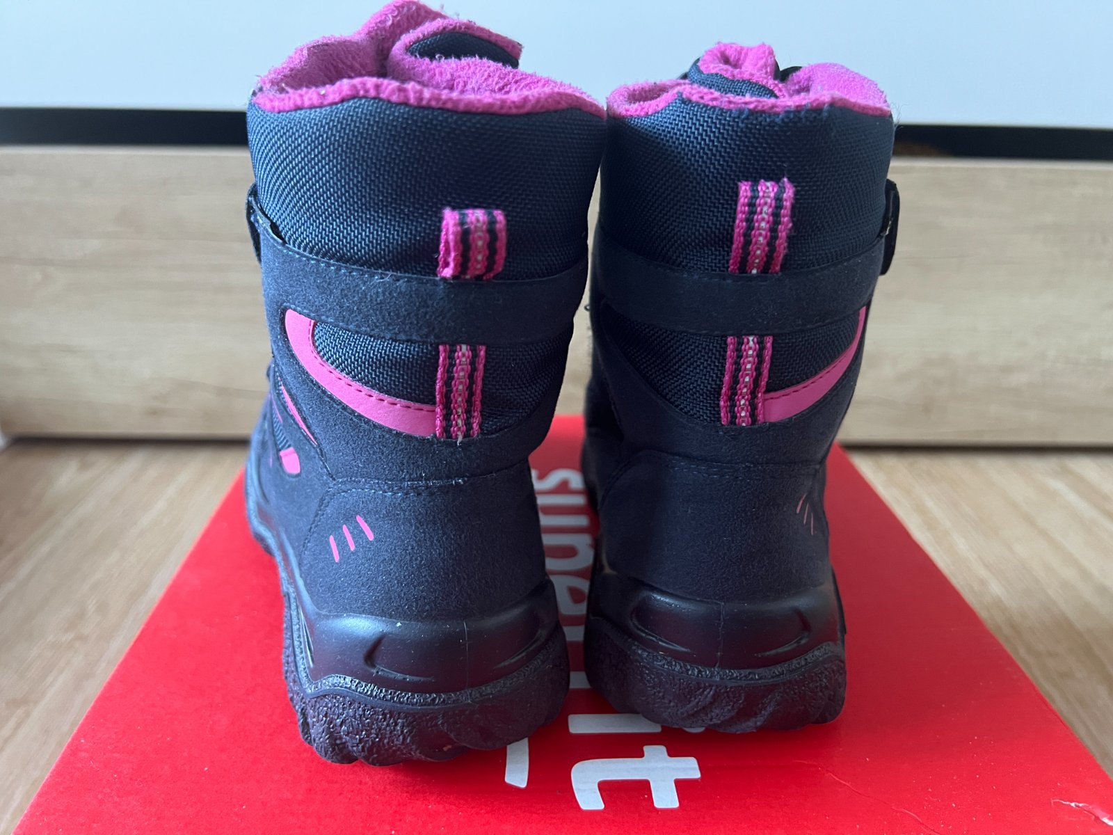 Prodám nošené zimní boty, nepromokavé díky membráně GORE-TEX. Boty jsou vysoké, extrémně lehké s maximálně ohebnou podešví. Svršek z přírodní kůže – useň v kombinaci s textilem, uvnitř zateplené syntetickou kožešinou. Velikost 34, délka vyjímatelné zateplené stélky ca 22,4 cm. Zapínání na suchý zip (vnitřní strana horních pásků lehce odřena). Boty jsou v pěkném stavu, neokopané, vykazují známky běžného nošení – 1 sezonu.