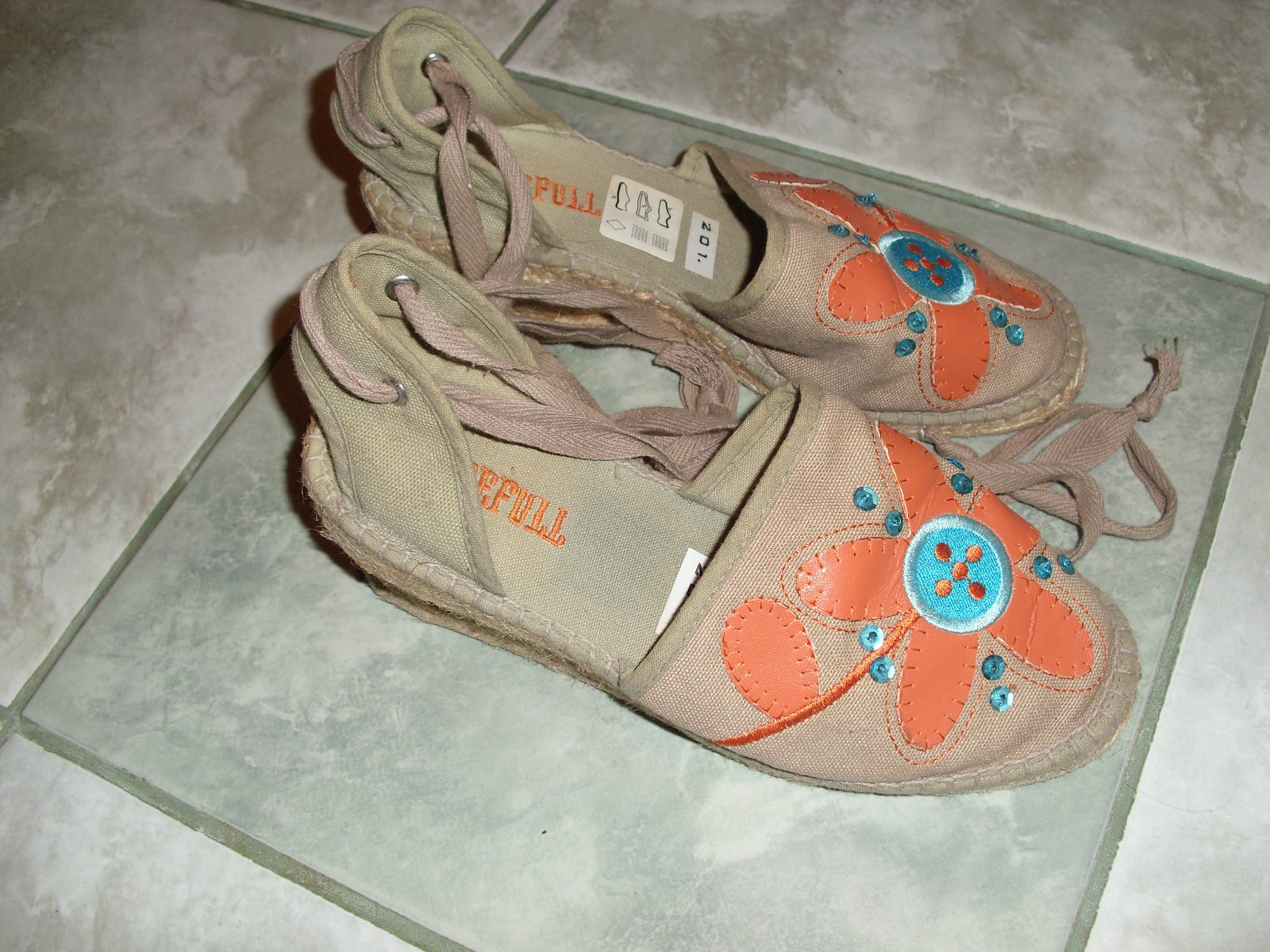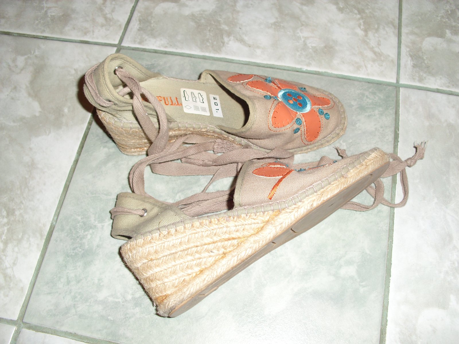 Boty na nízké platformě. Šňůrka na zavazování kolem kotníku, nebo lýtka. Klínek je slámový 6 cm (prostupuje lepidlo). Vel.36. Vn. stélka 22 cm.